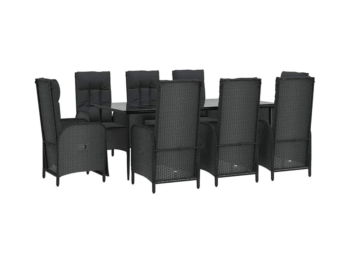 Mueble comedor de jardín de 9 piezas y cojines de resina tejida en negro 02_0014834