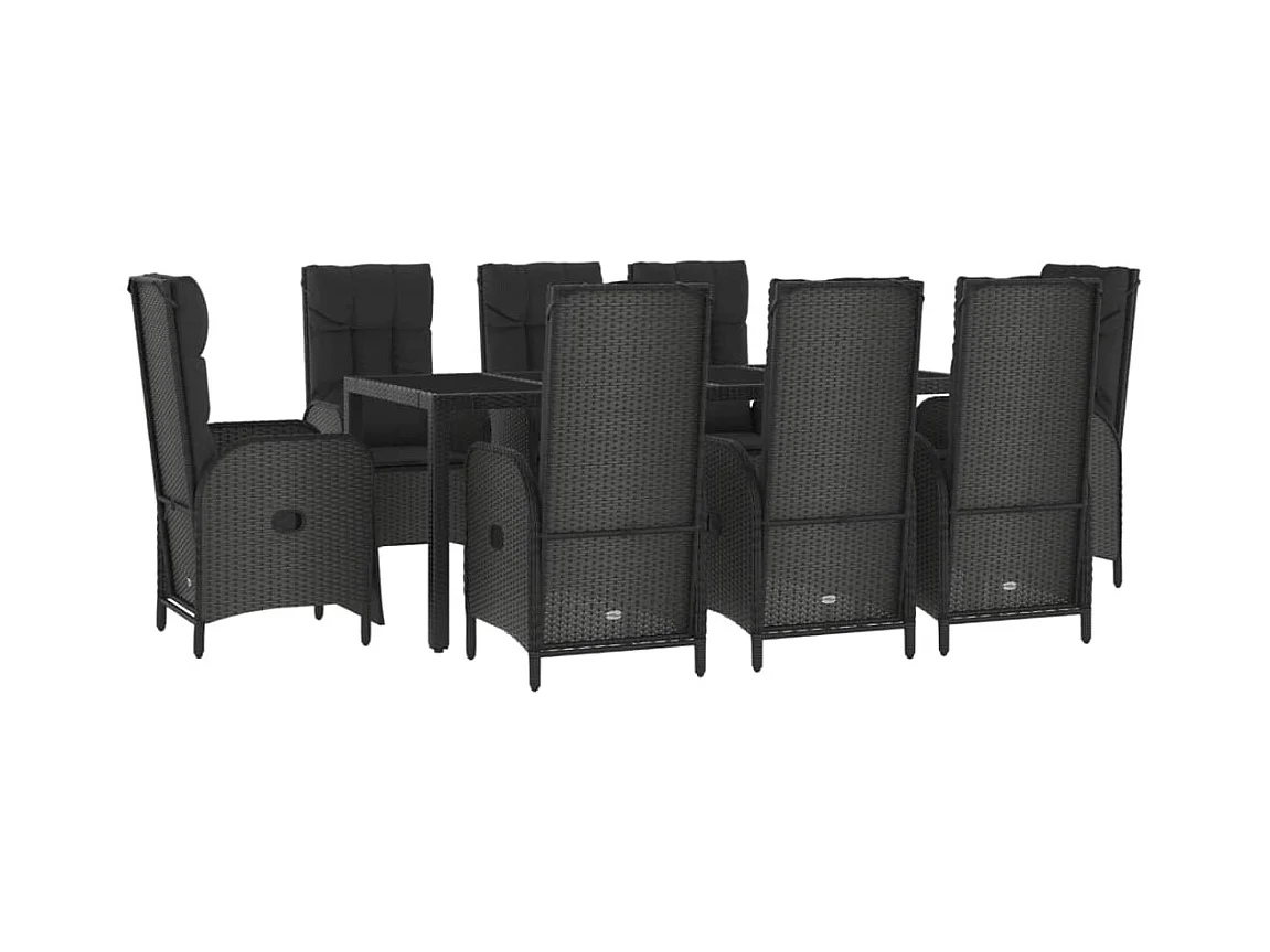 Mueble comedor de jardín de 9 piezas y cojines de resina tejida en negro 02_0014841