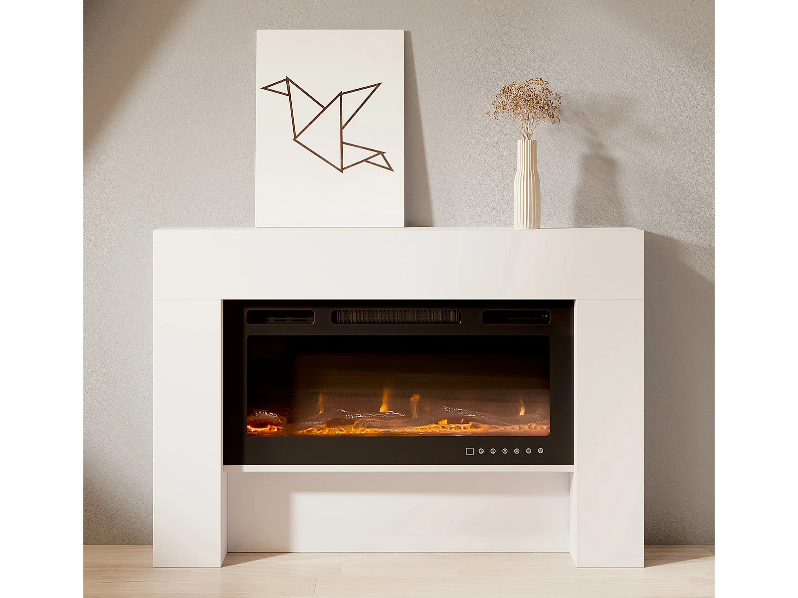 Mueble con chimenea para Salón comedor en Blanco 127,4x21x86,6cm Candela