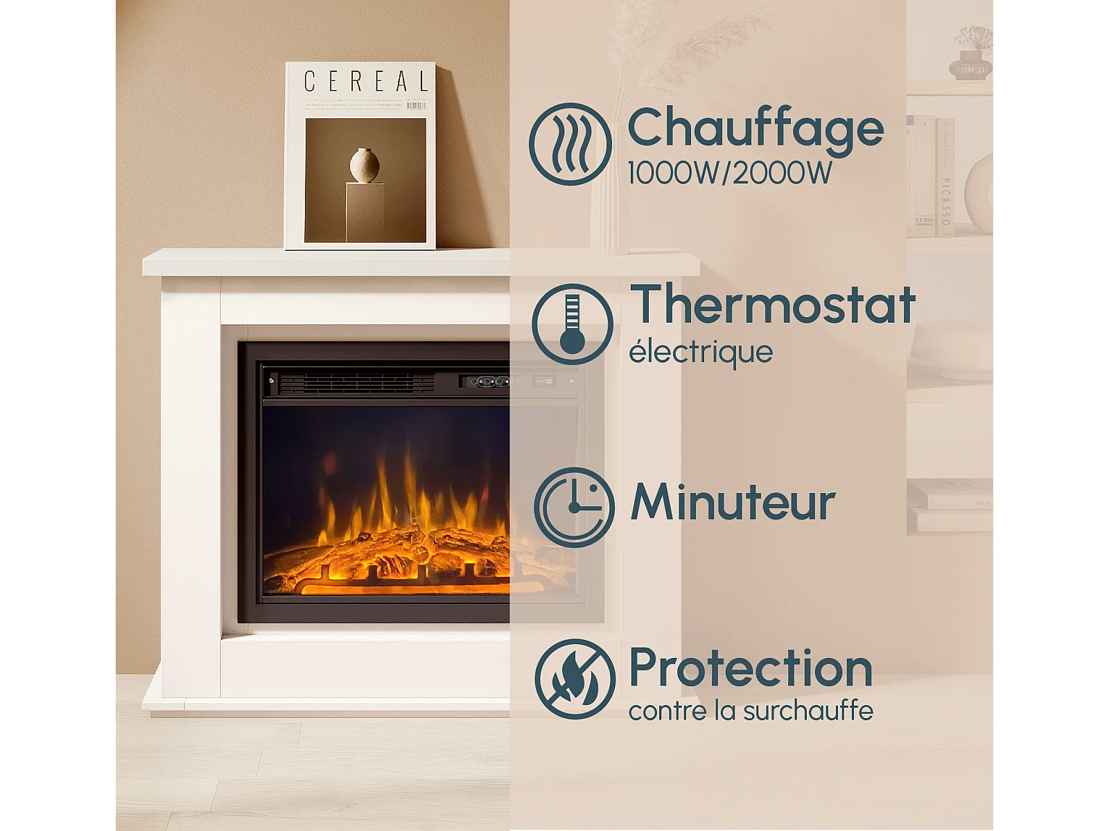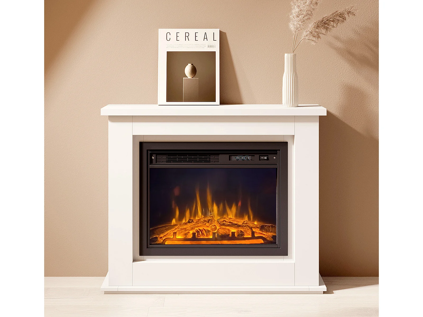 Mueble con chimenea para Salón comedor en Blanco 98x27,5x81cm Alaska