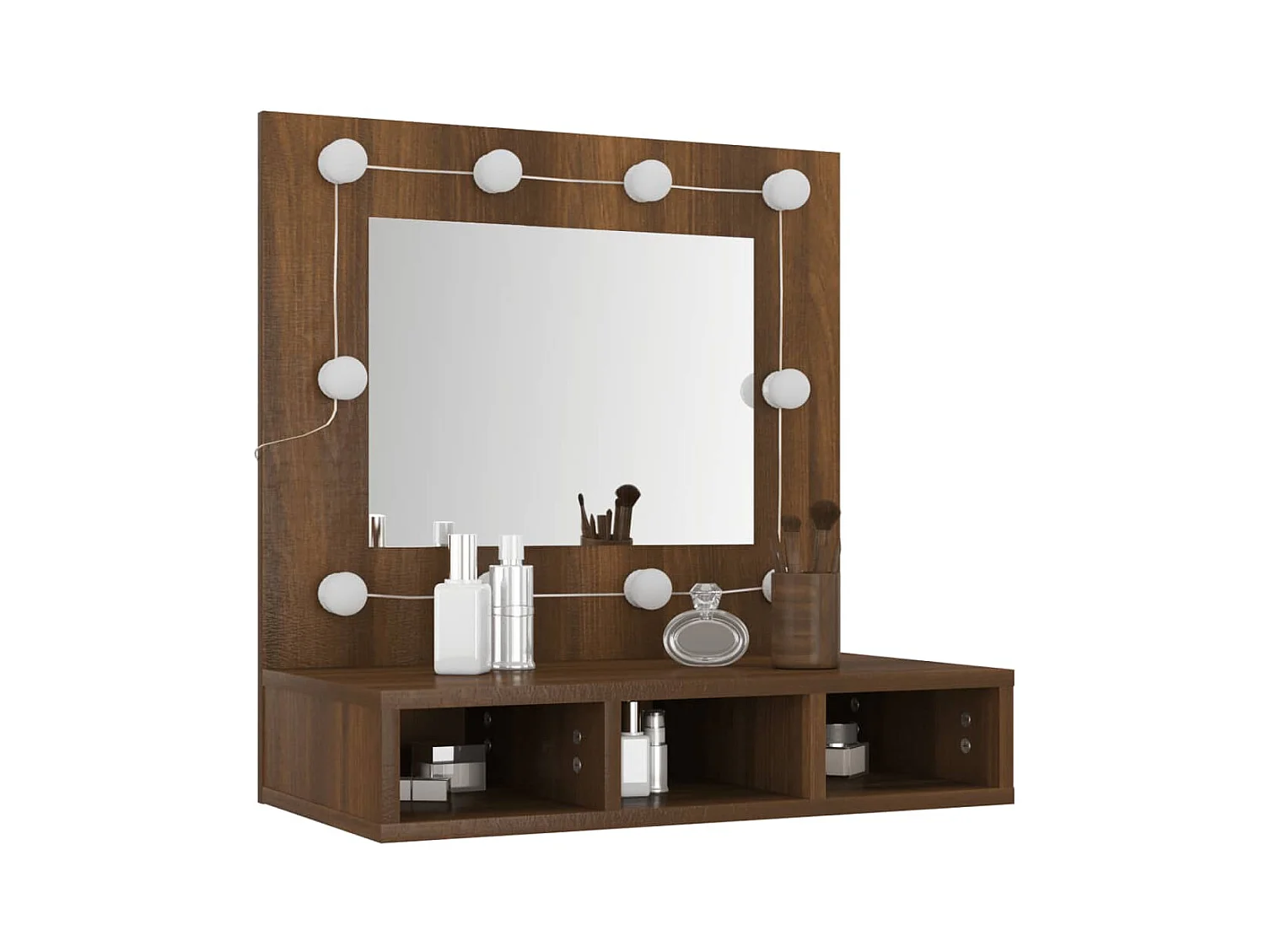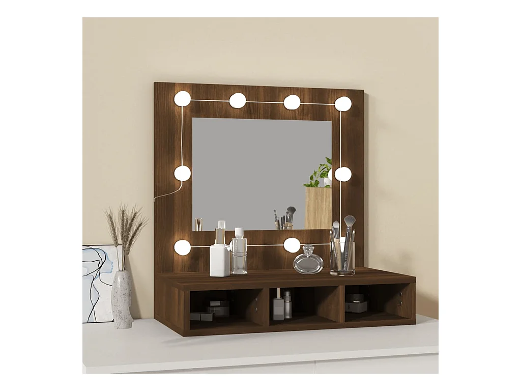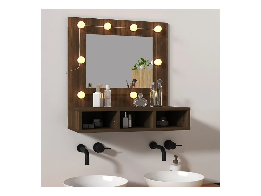 Mueble con espejo y LED marrón roble 60x31,5x62 cm