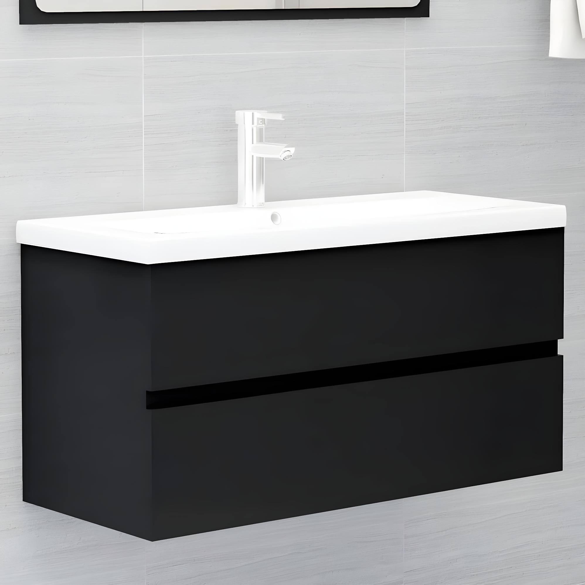 Mueble de baño negro con lavabo 91x35x60 cm