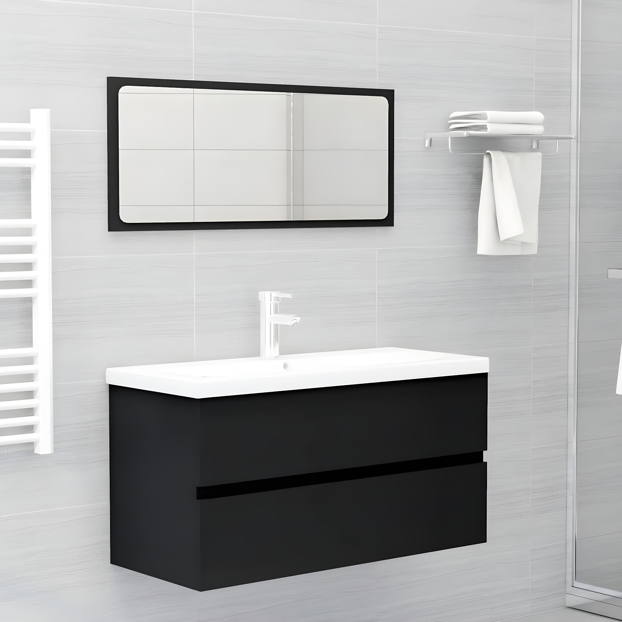 Conjunto de gabinete de baño de 3 piezas de madera de ingeniería negra