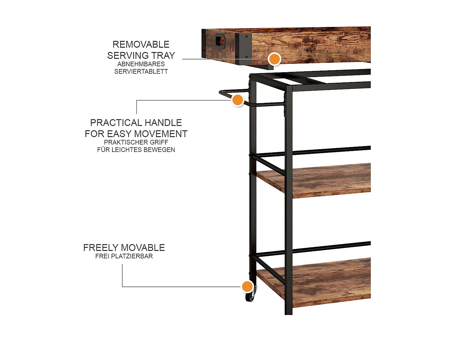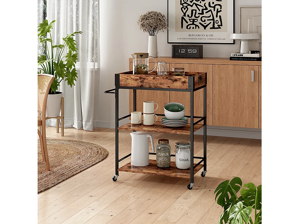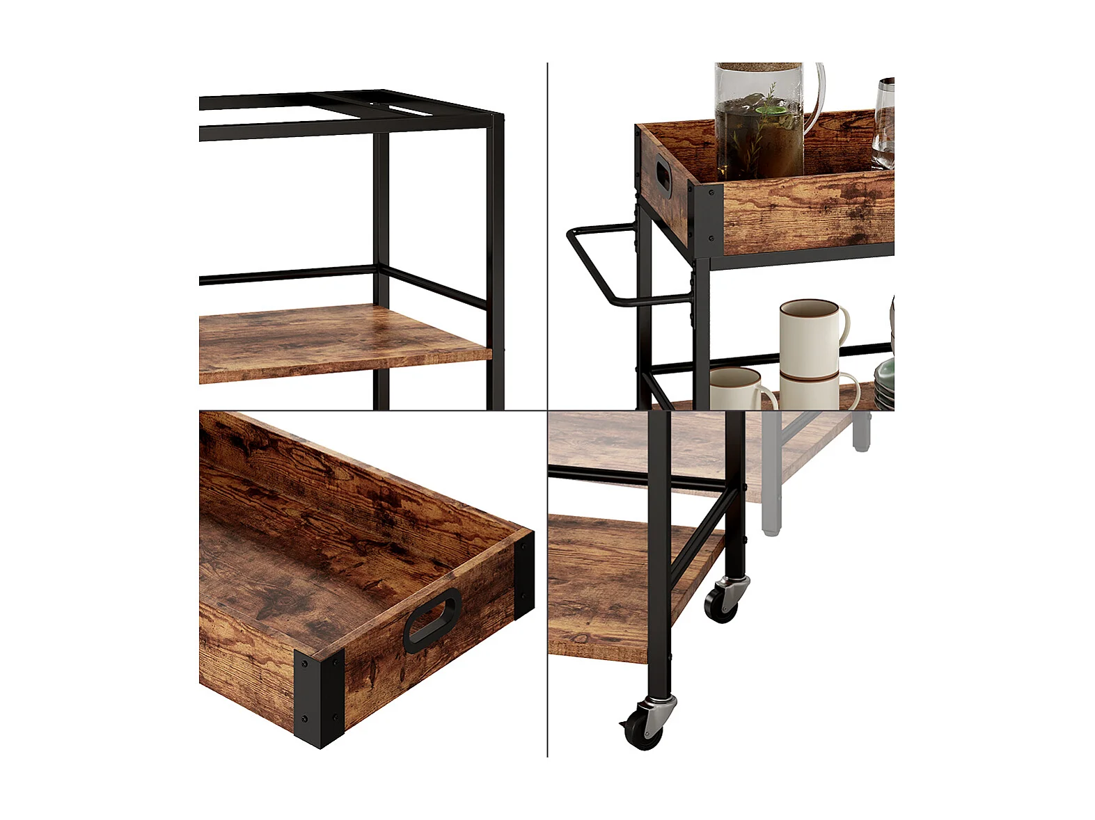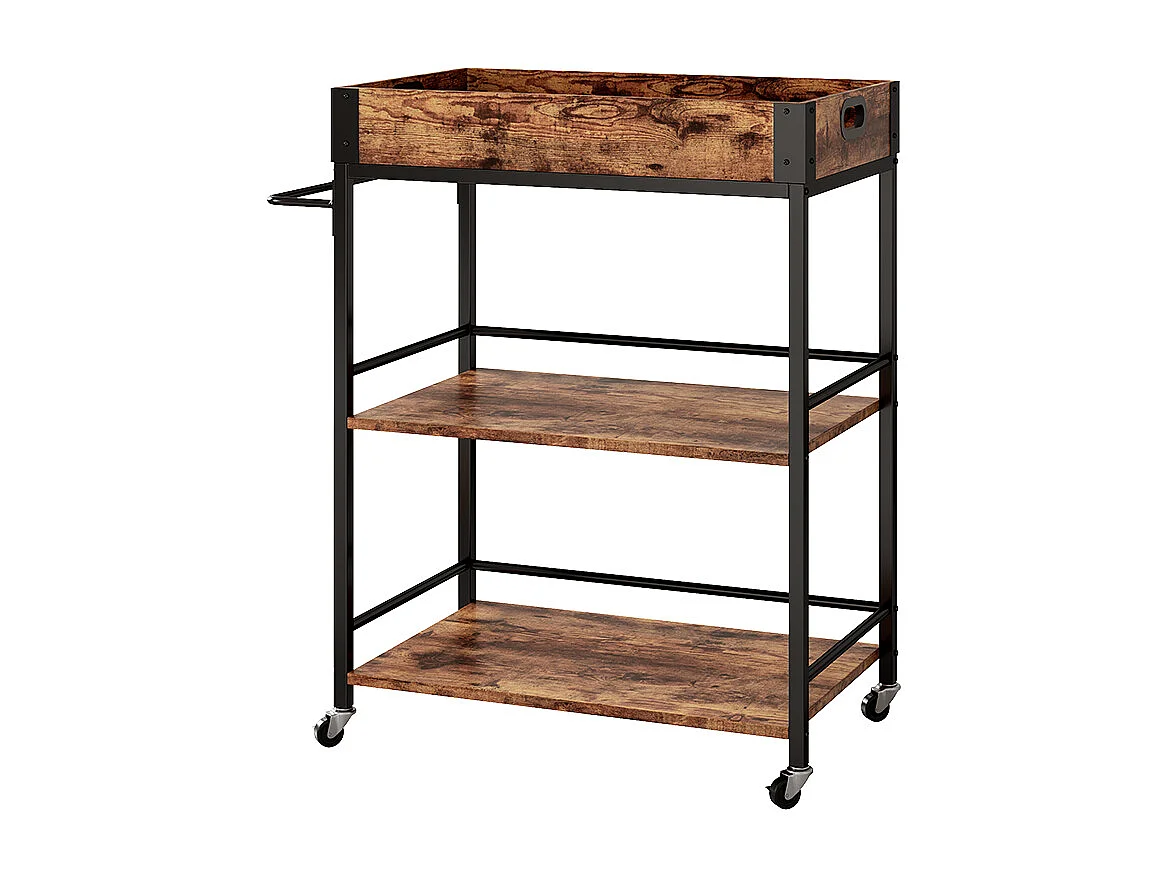Carrito de cocina estilo industrial colección TAMPA con estructura de metal negro y tablero de madera.