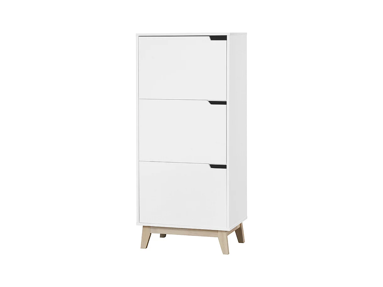 Estantería de madera maciza con 3 estantes blanco - SAURA - DECOWOOD