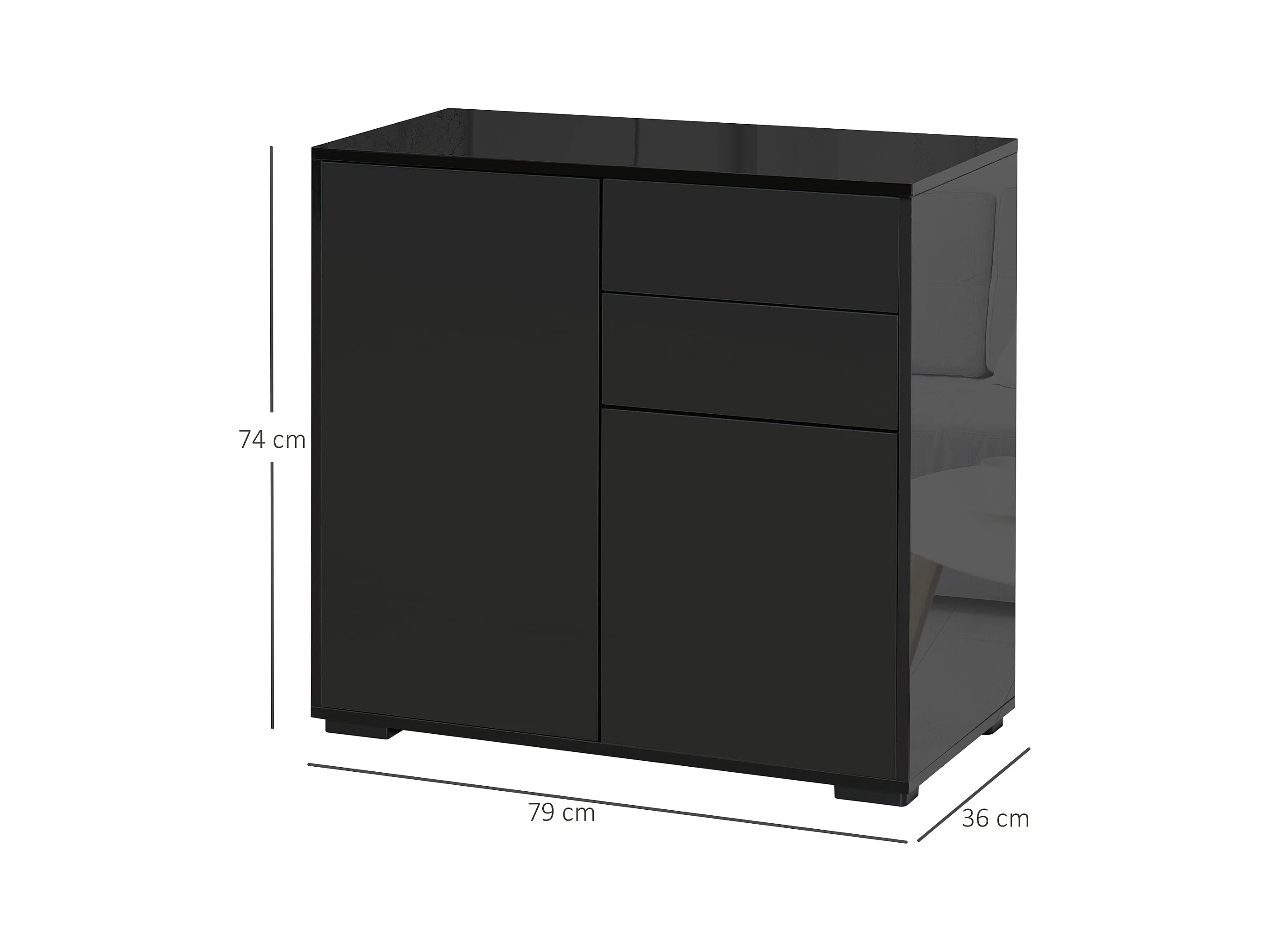 Mueble de almacenaje para salón dormitorio 2 cajones 2 puertas con balda negro 117x36x74 cm