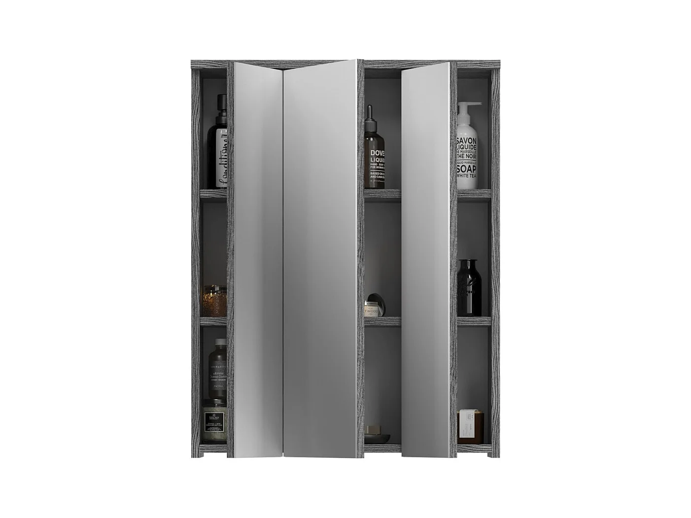 Mueble de baño con espejo de madera contrachapada de hormigón gris