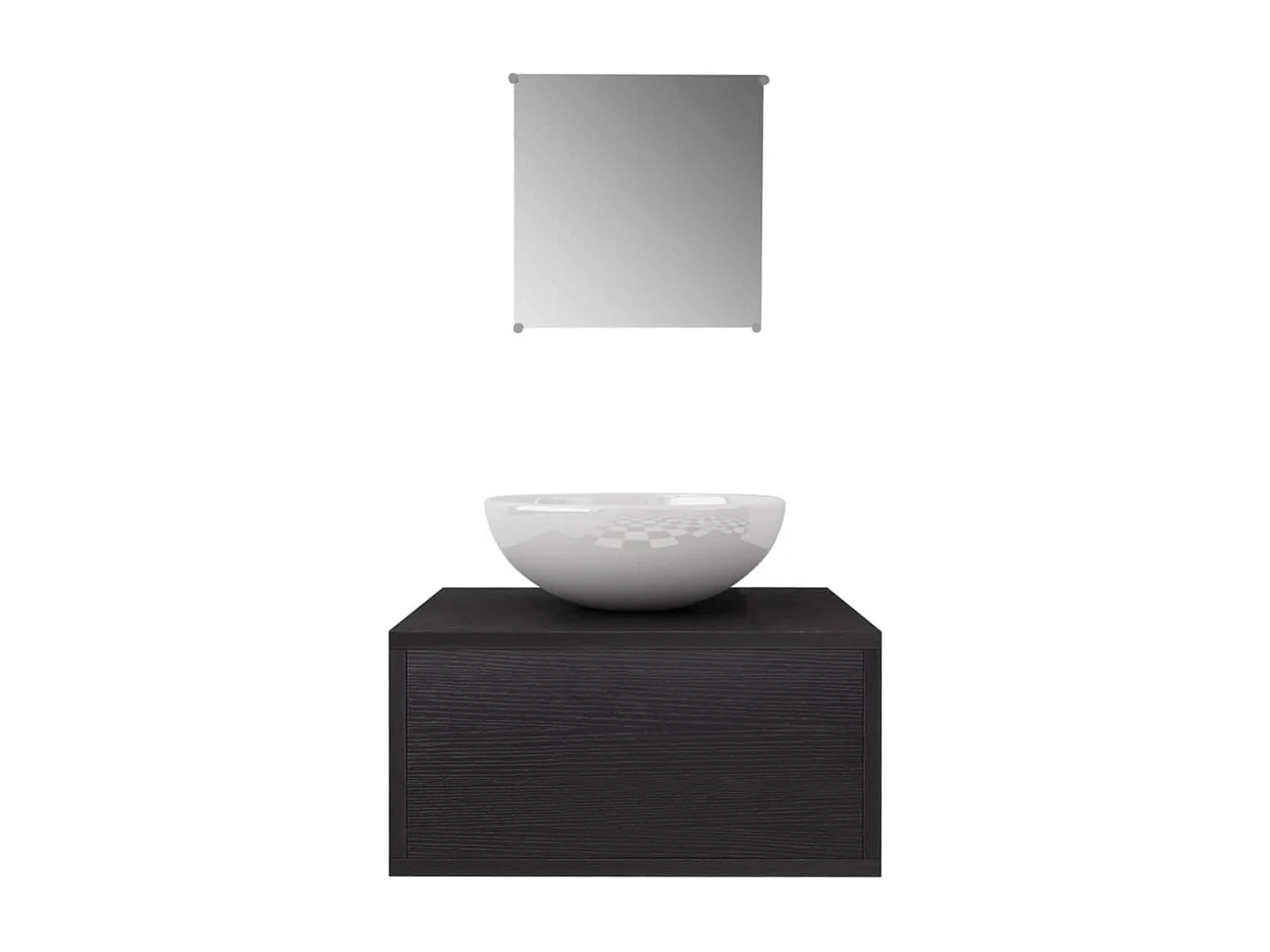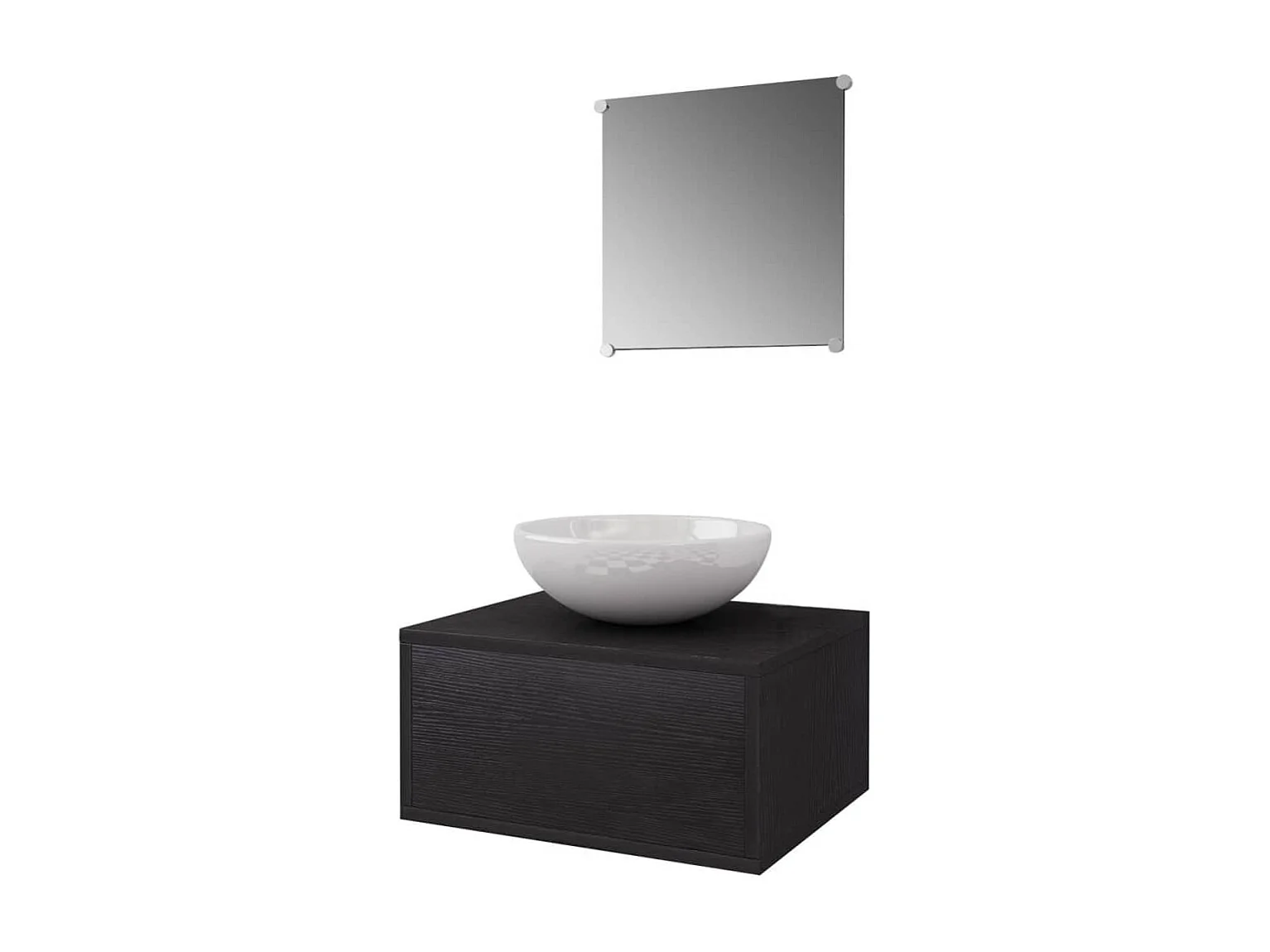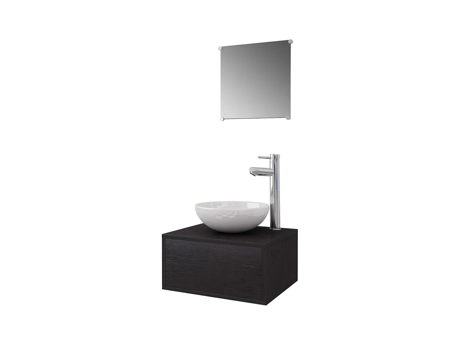 Mueble de baño 4 piezas con lavabo y grifo Negro