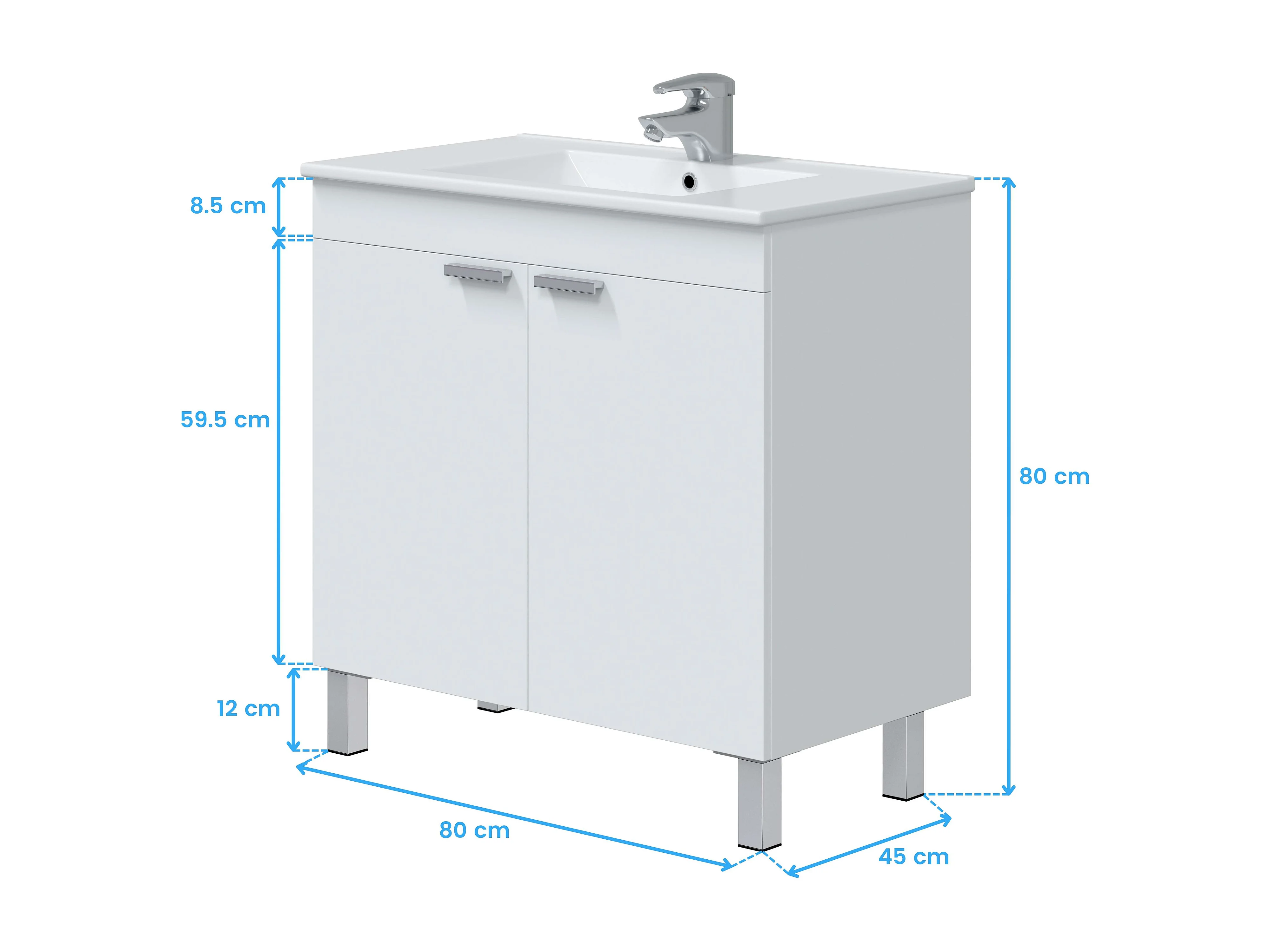Mueble de Baño Atenea 80 cm Armario 2 Puertas Blanco Brillo con Lavabo