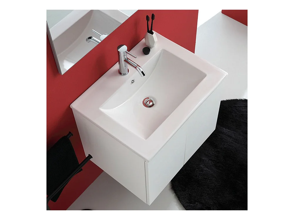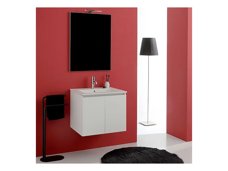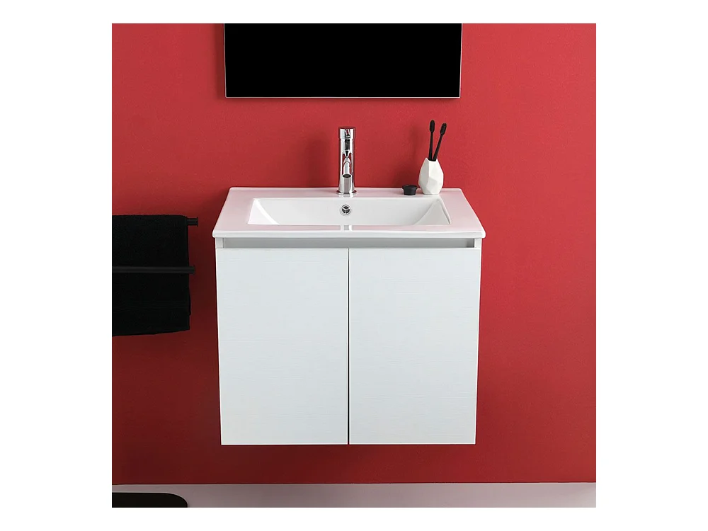 Mueble de baño blanco "Hydra" 60 cm suspendido con 2 puertas con lavabo y espejo
