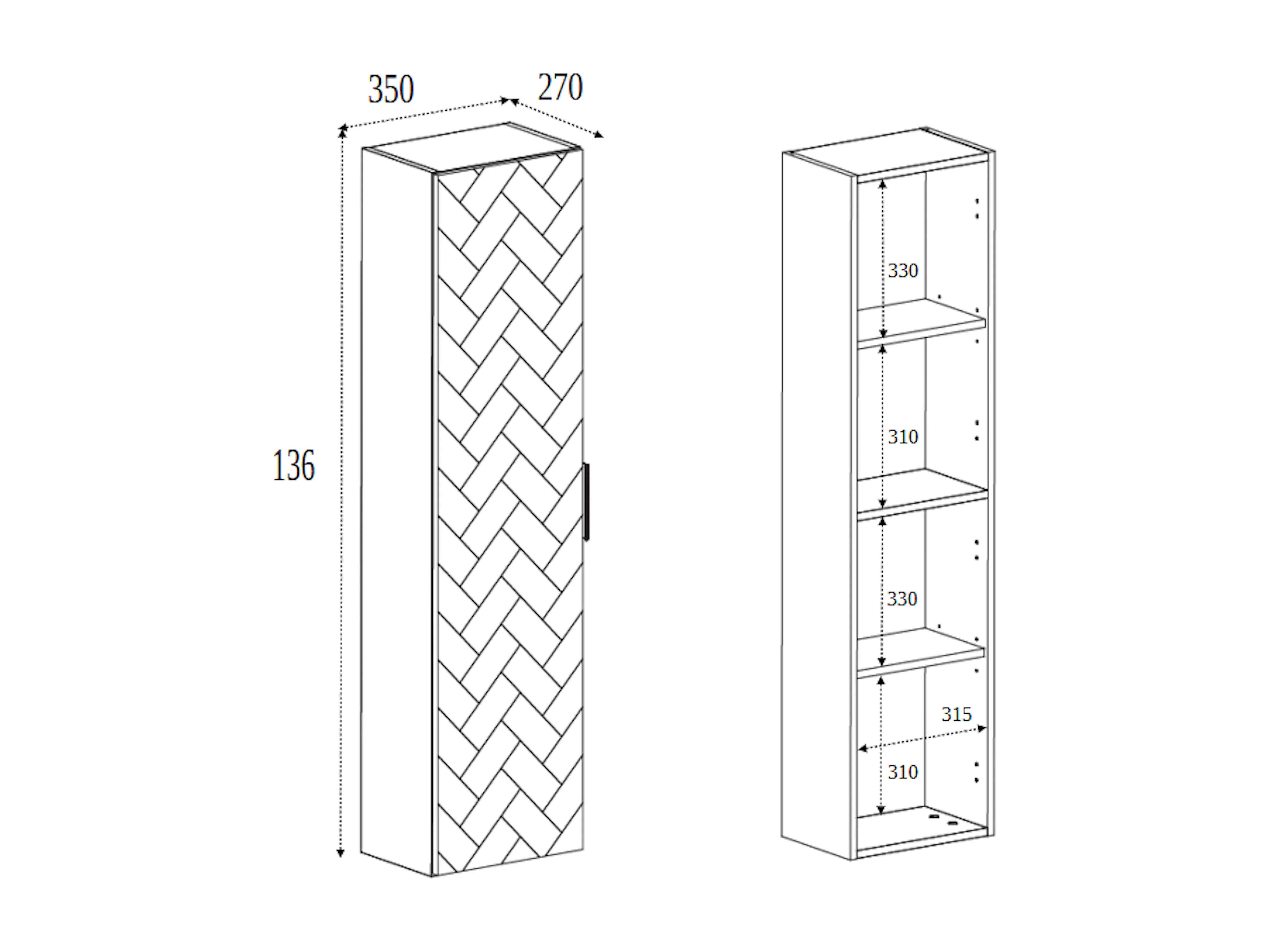 Mueble de baño, blanco mate, 35 x 136 x 27 cm, tiradores plateados