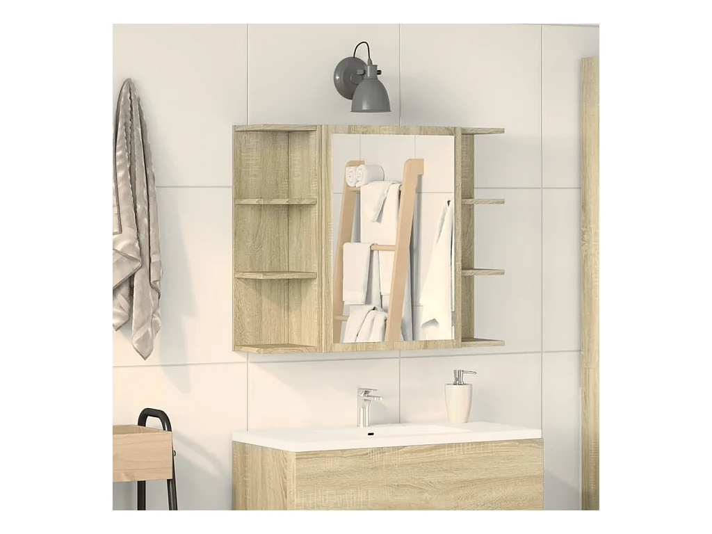 Gabinete de espejo para baño de madera de ingeniería de roble Sonoma