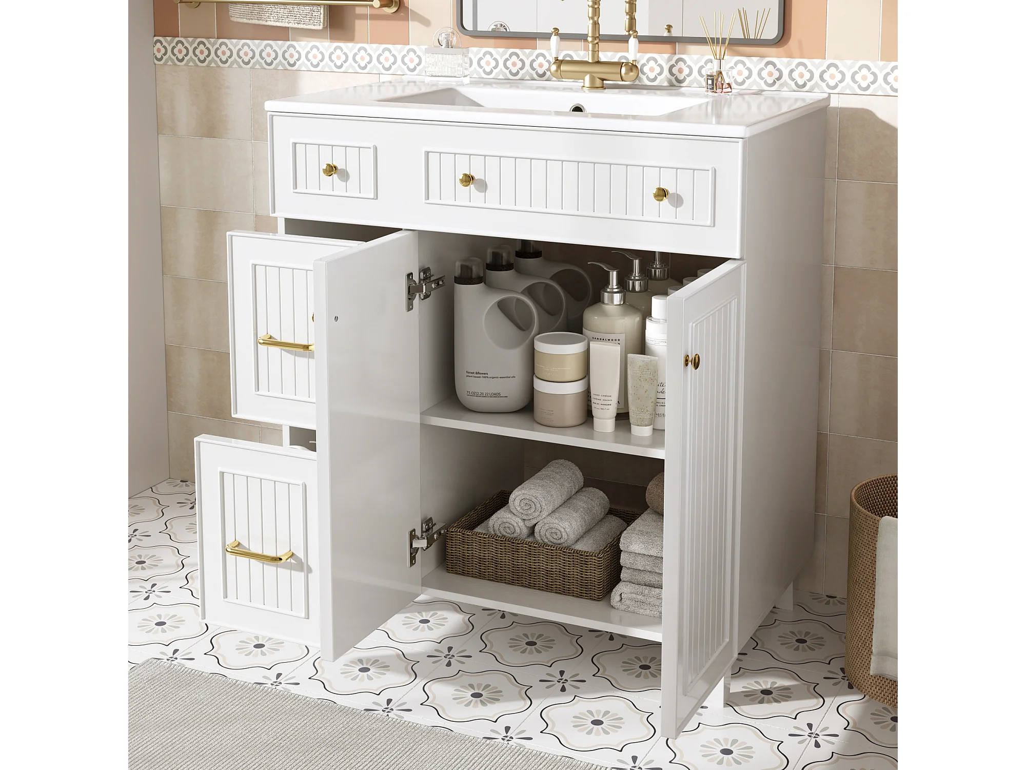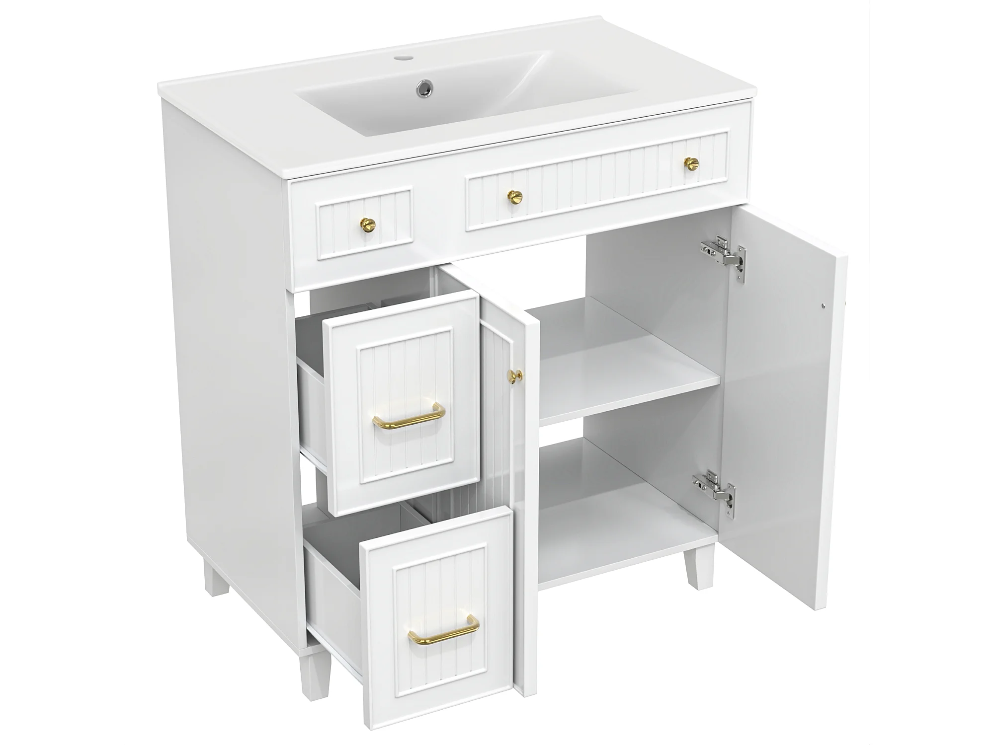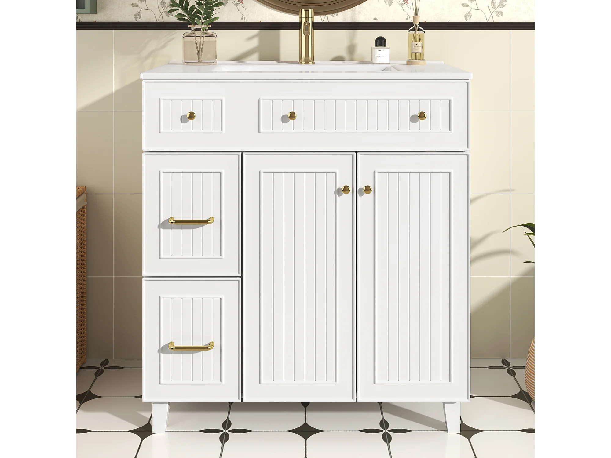 Mueble de baño con lavabo de cerámica - 81,7 x 46,8 x 90 cm - con 2 cajones + 2 puertas - MDF - blanco
