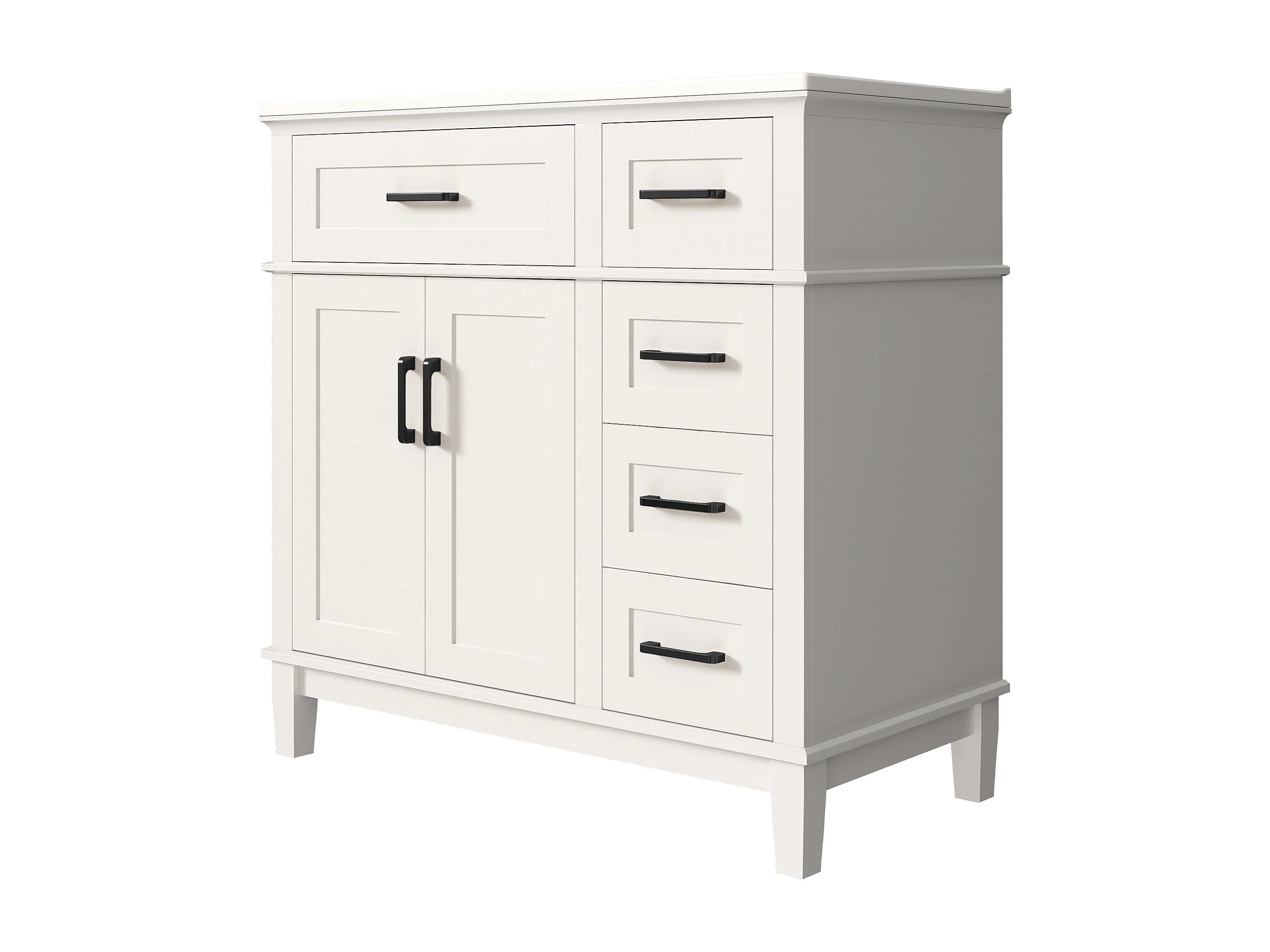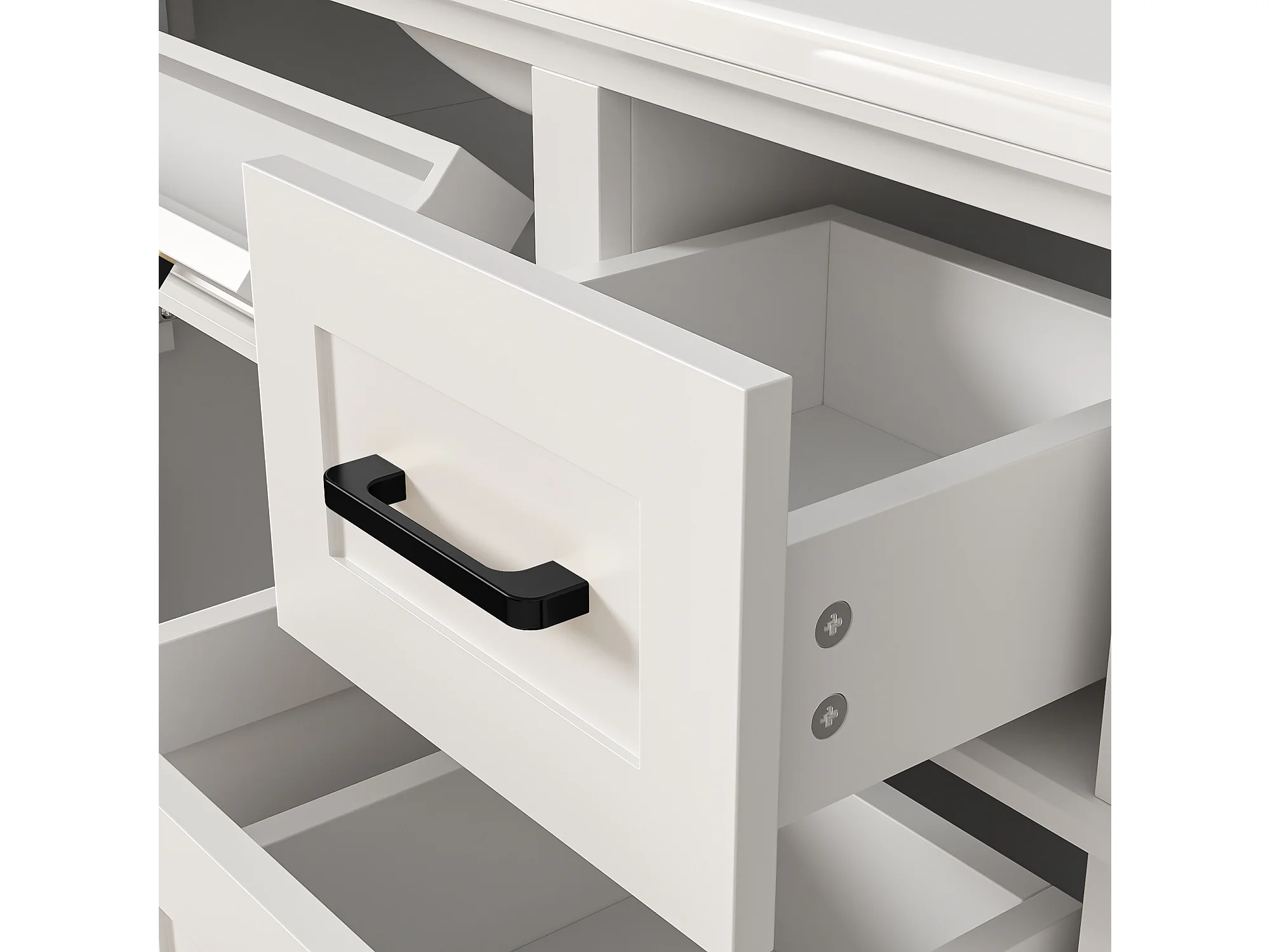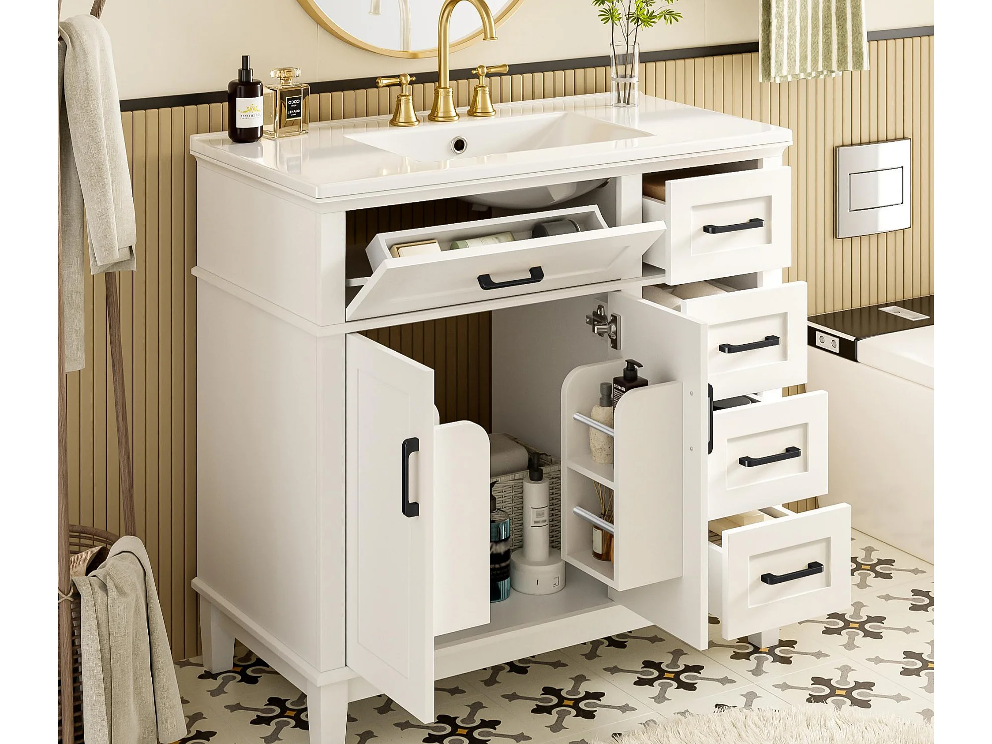 Mueble de baño con lavabo de cerámica 90x46x87 cm - 4 cajones y 3 puertas - Blanco