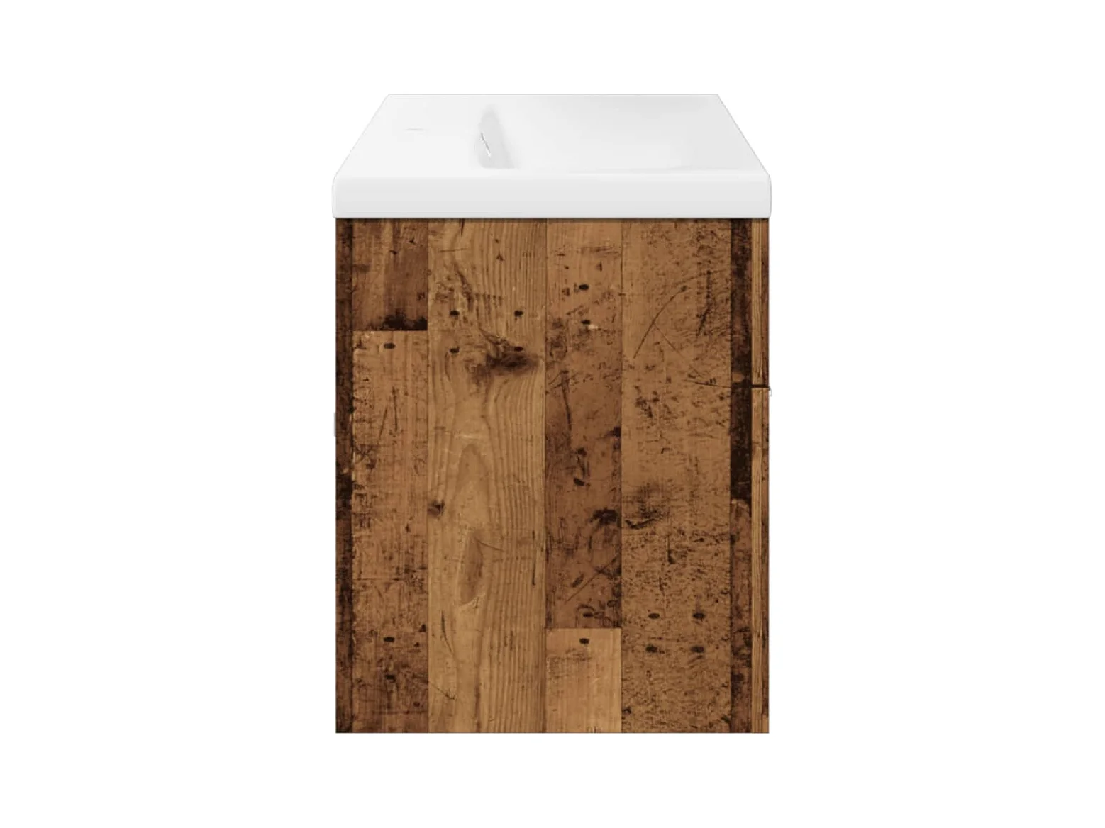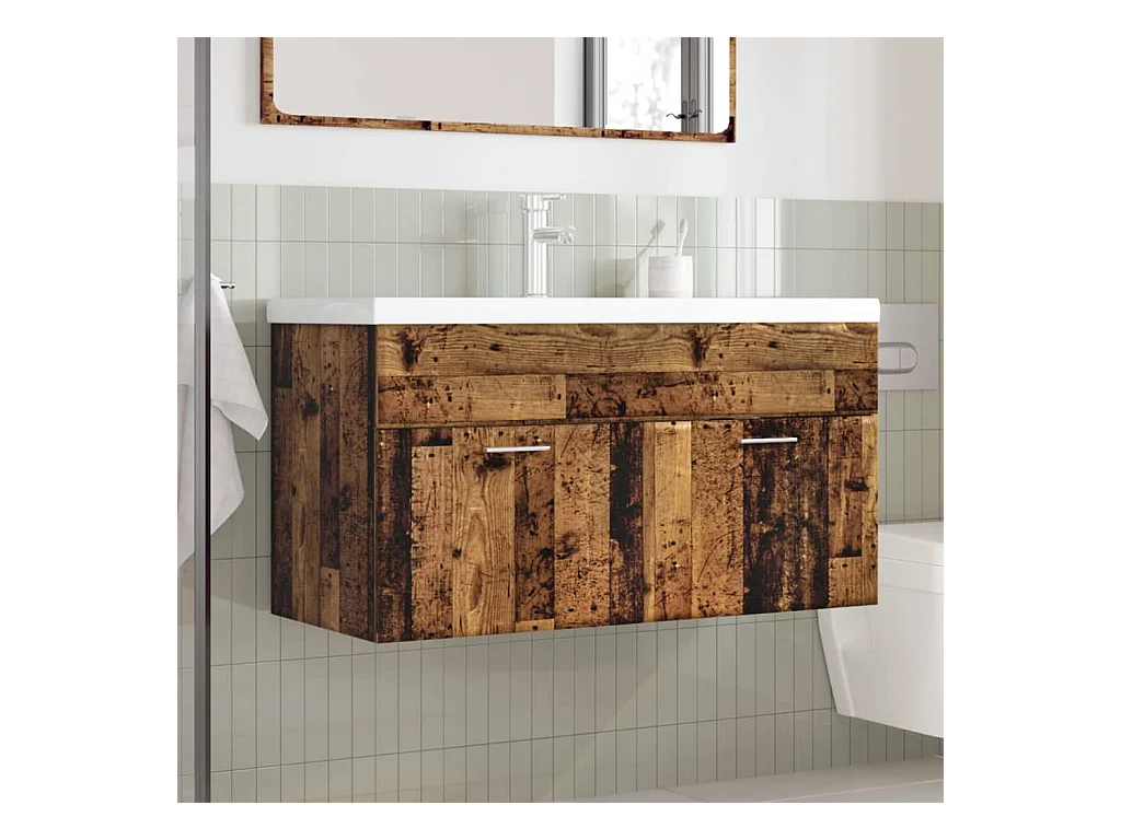 Muebles con lavabo integrado, madera antigua, madera de ingeniería.