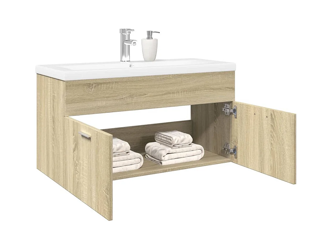 Mueble de lavabo con fregadero integrado Roble Sonoma Aglomerado