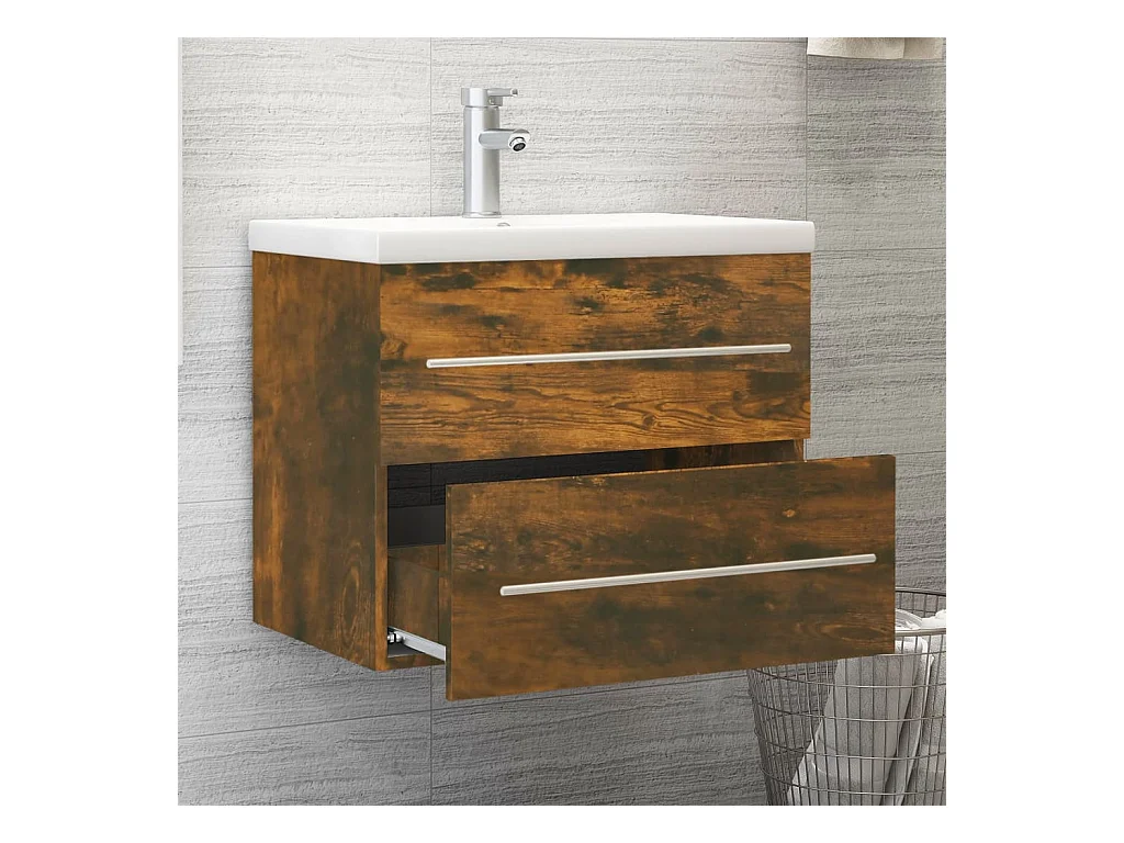 Mueble de baño con lavabo madera de ingeniería roble ahumado ES666489