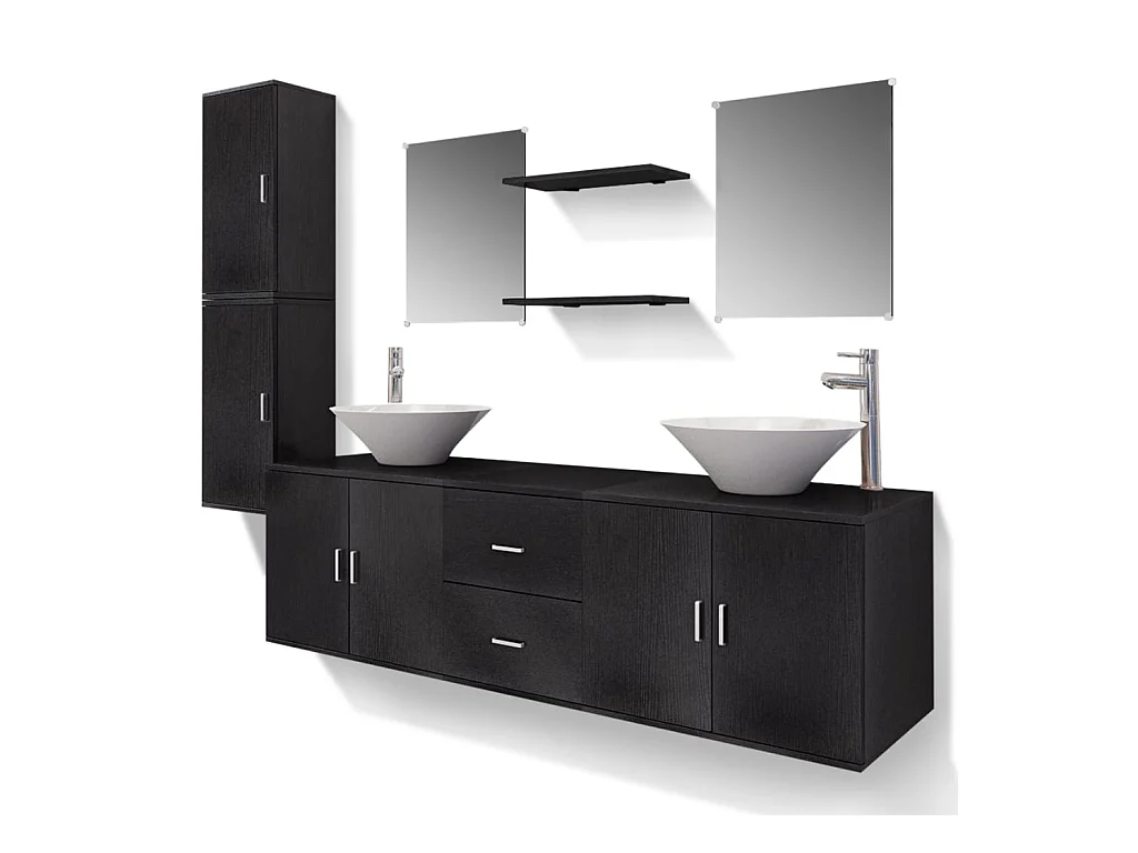 Mueble de baño de 11 piezas con lavabo y grifo Negro