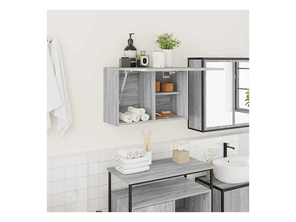 Mueble de baño con lavabo madera contrachapada gris Sonoma