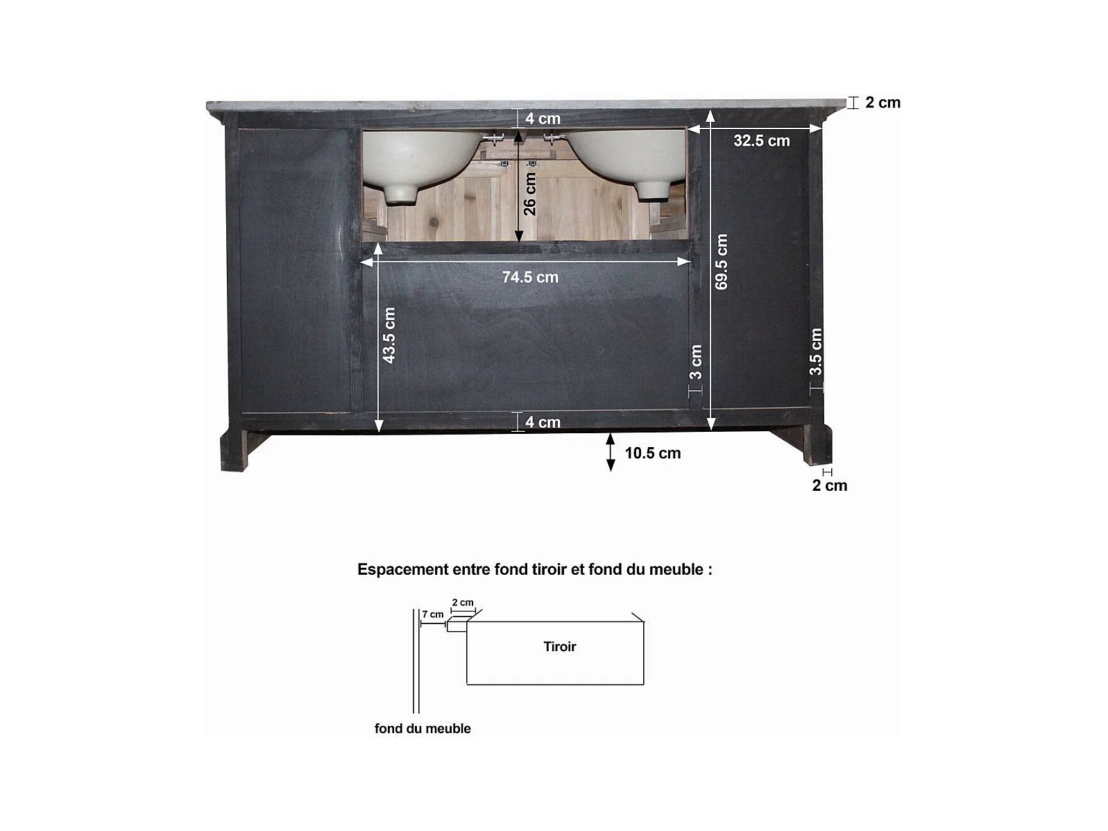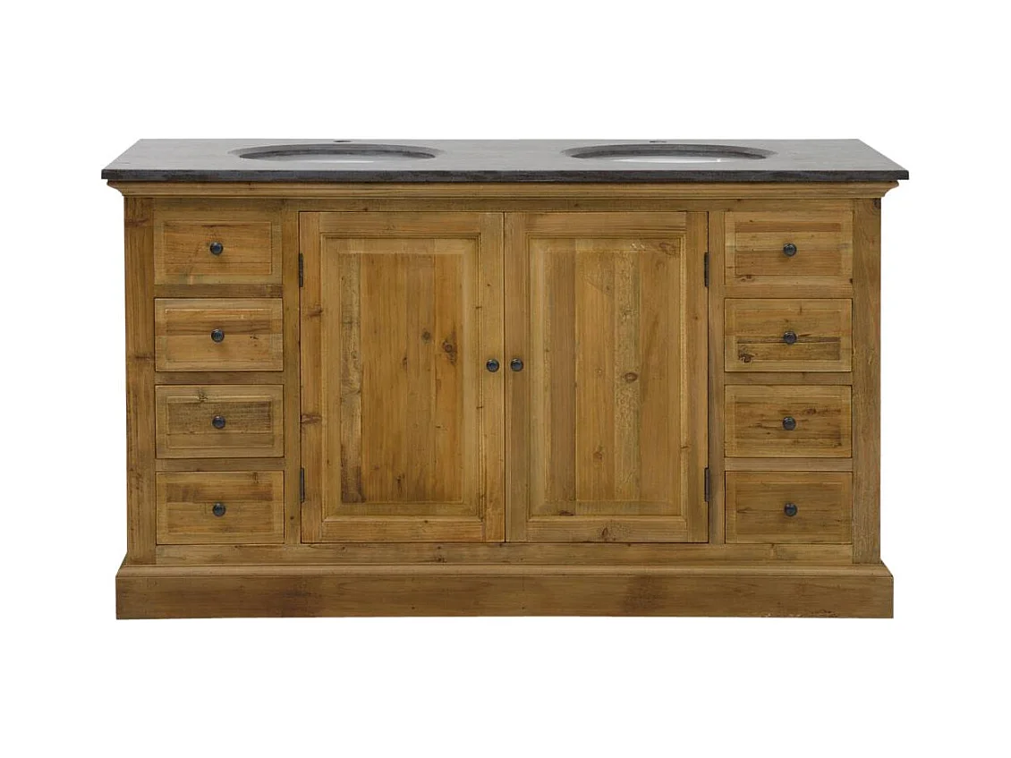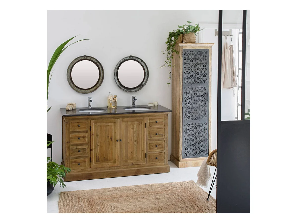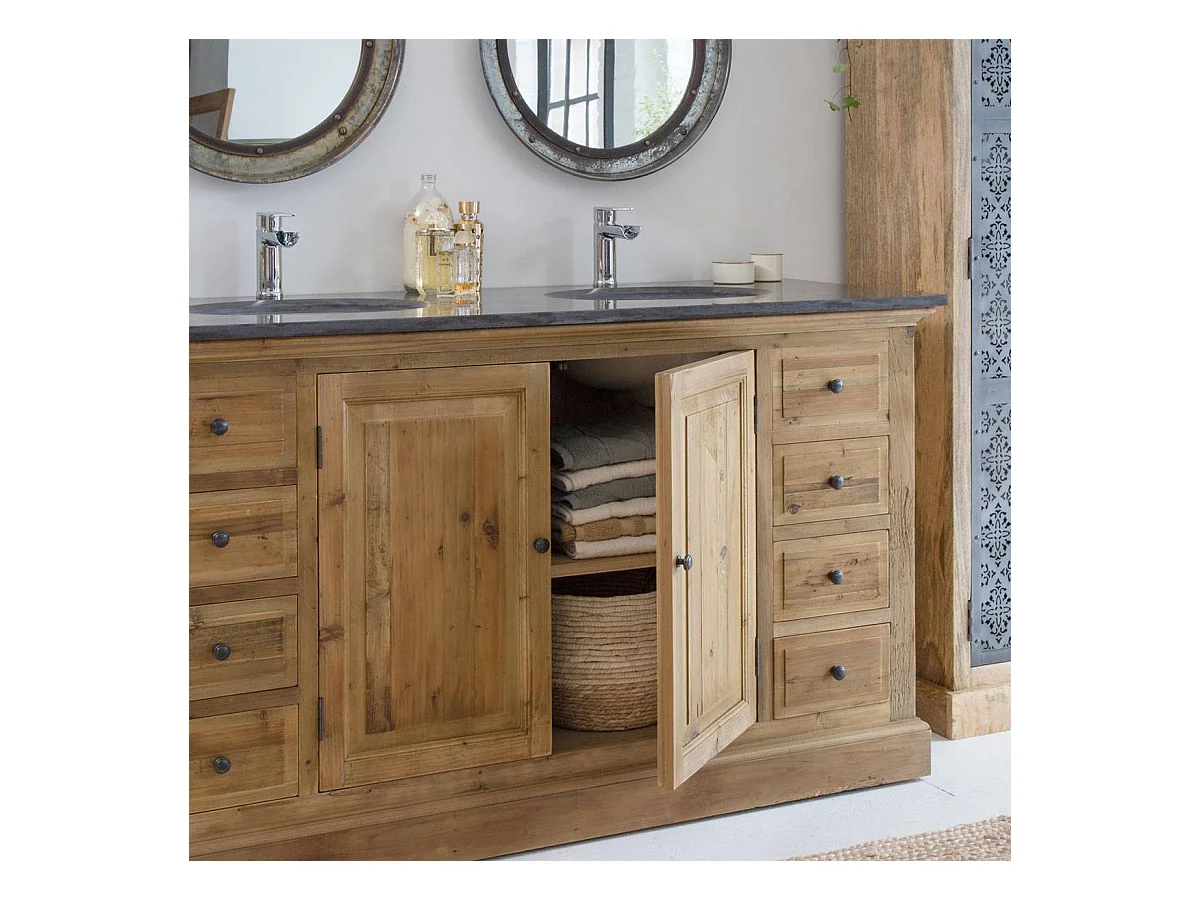 Mueble lavabo doble en roble y piedra azul L191 cm - HAUSMANN