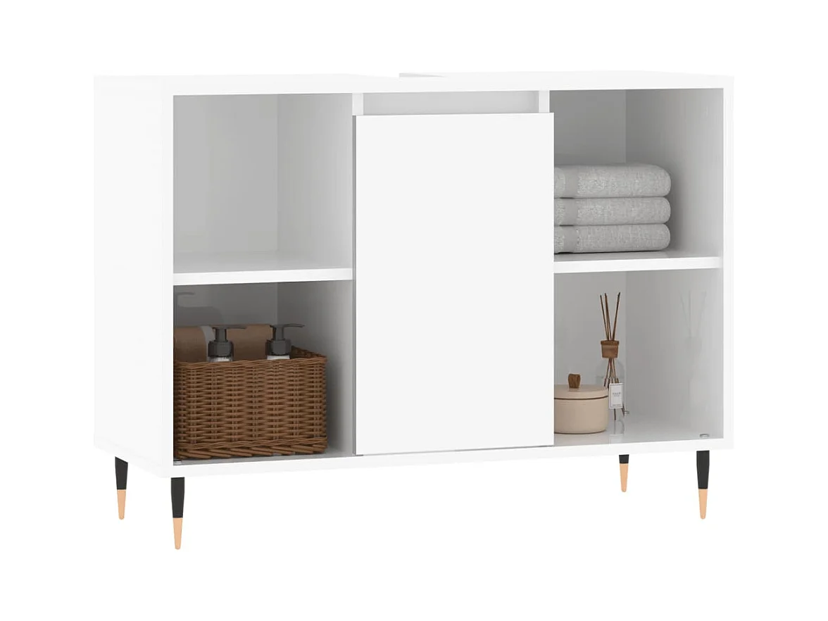 Mueble de baño madera de ingeniería blanco brillo 80x33x60 cm