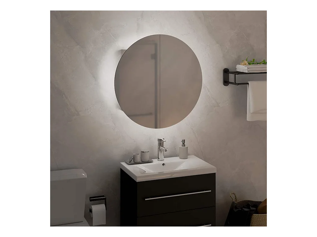 Mueble de baño redondo con espejo y luces LED, blanco, 47 x 47 x 17,5 cm