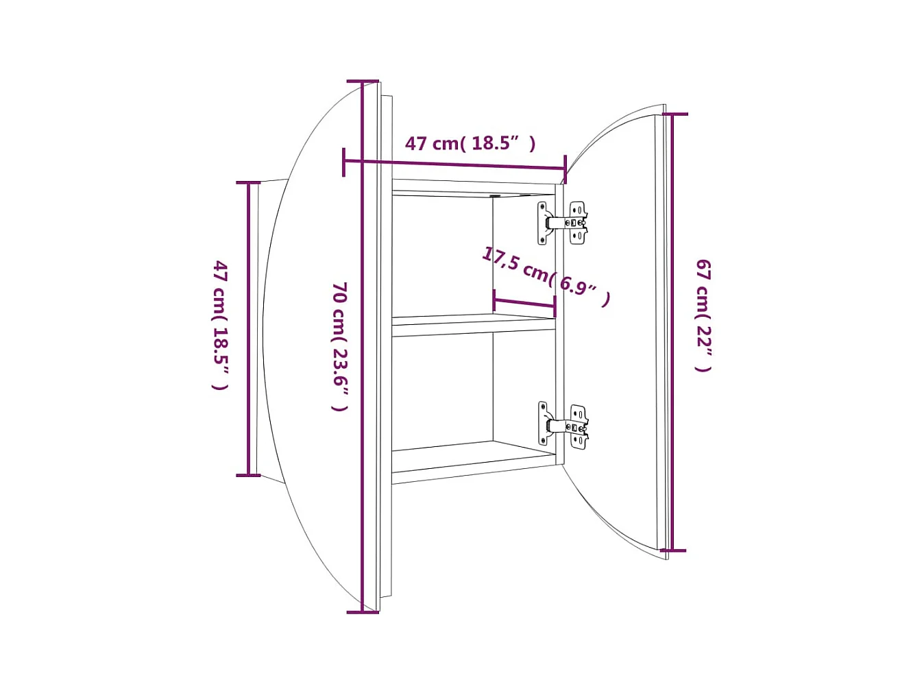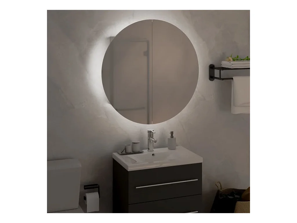 Mueble de baño redondo con espejo y luces LED, blanco, 47 x 47 x 17,5 cm