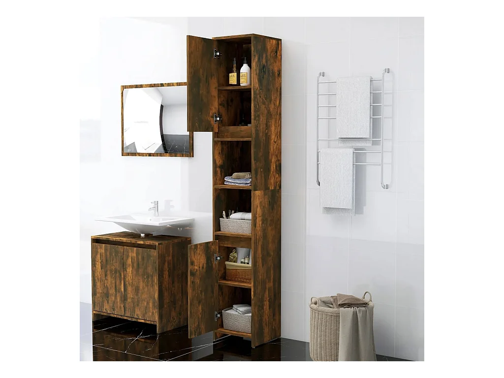 Mueble de baño roble ahumado 30x30x190 cm madera de ingeniería