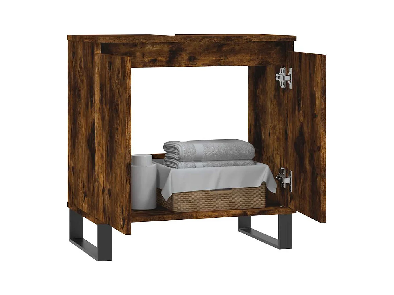 Mueble de baño roble ahumado 58x33x60 cm madera de ingeniería