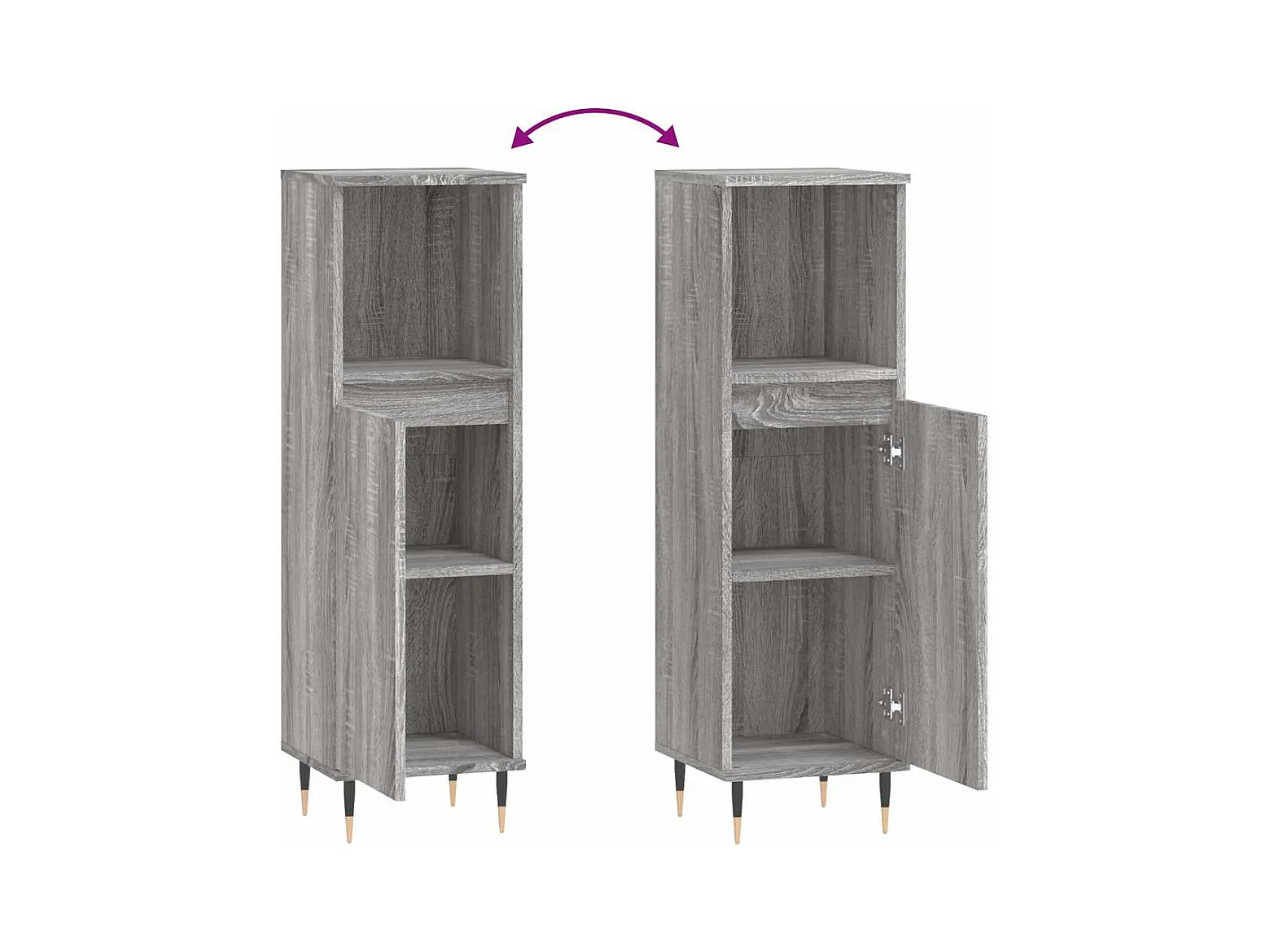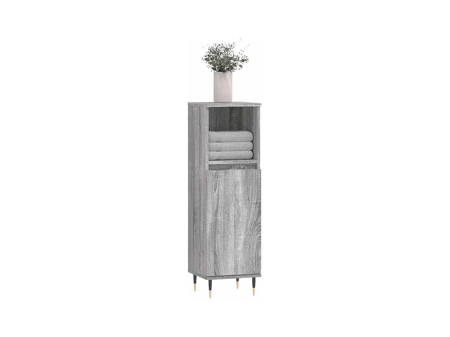 Mueble de baño con cajón, estantes regulables, madera de melamina, color gris, compacto y funcional (30x30x82cm)