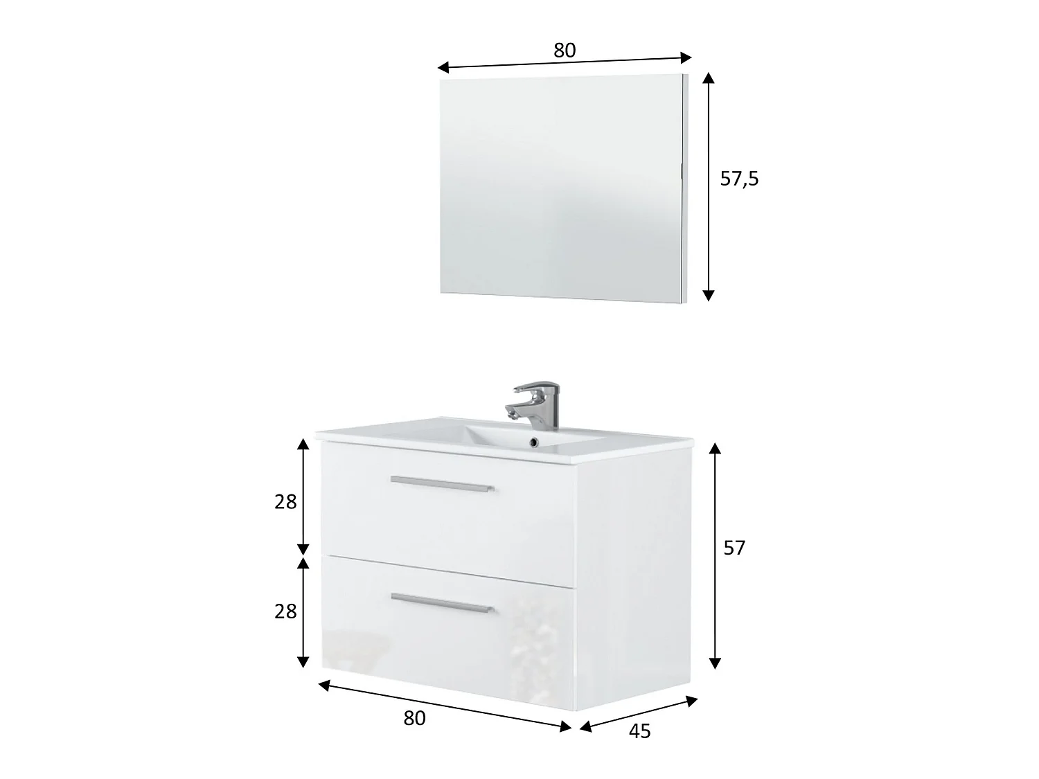 Mueble lavabo + lavabo 80cm MONTADO SIENA Blanco Lacado