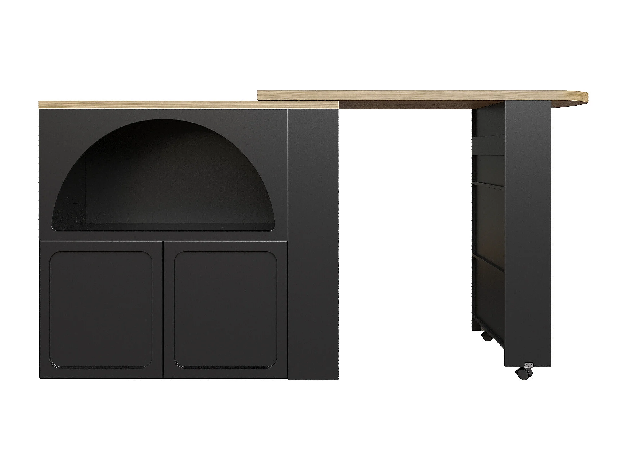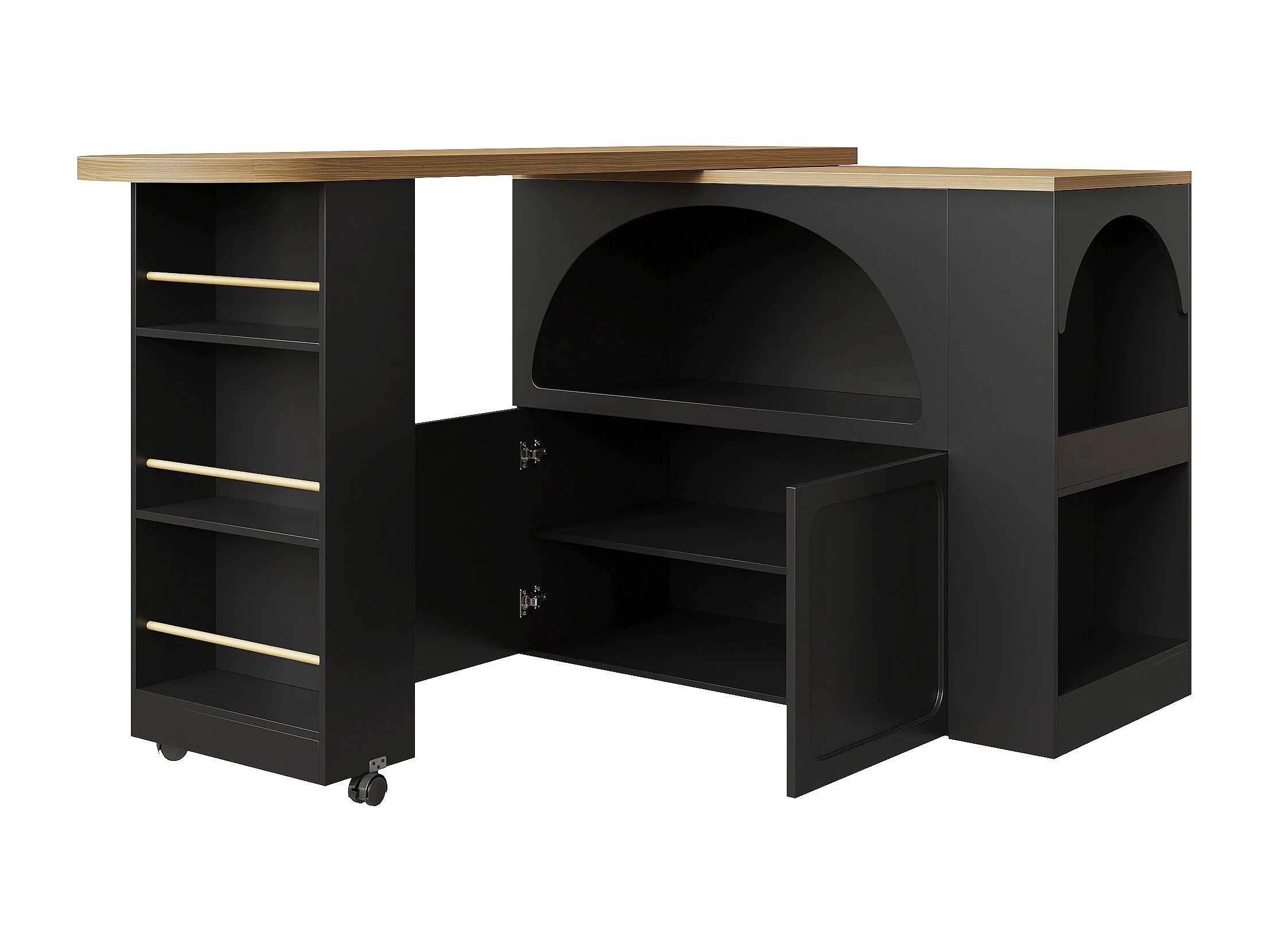 Mueble de bar de cocina extensible - con rotación 360° - 205x39x100cm - 2 puertas - con estantes laterales - Negro
