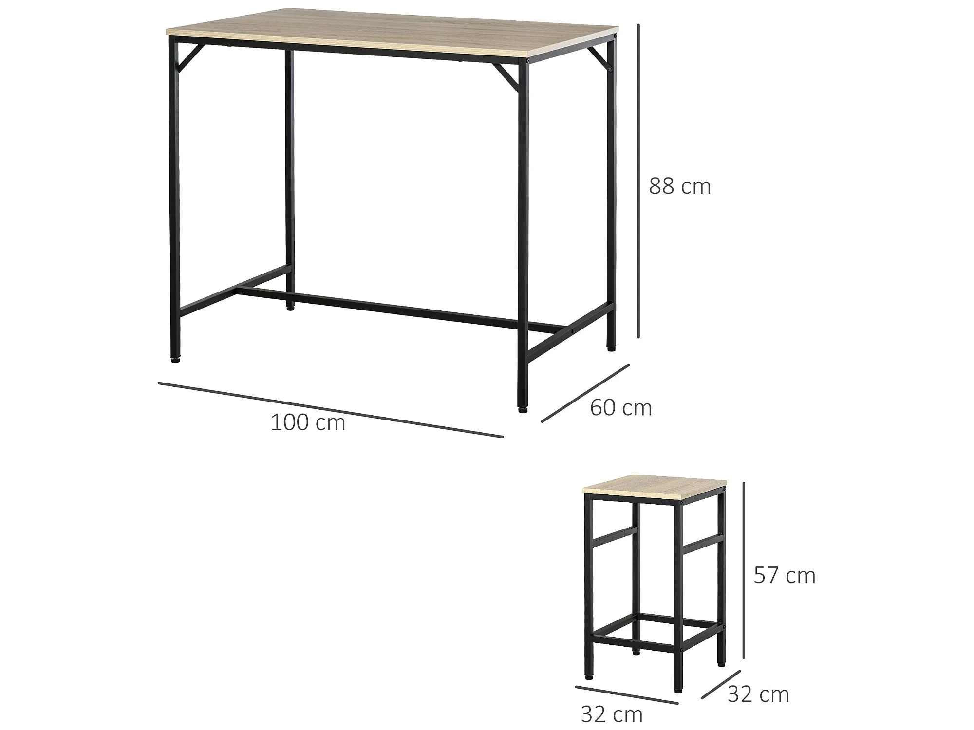 Conjunto de bar roble 100x60x88 cm HOMCOM