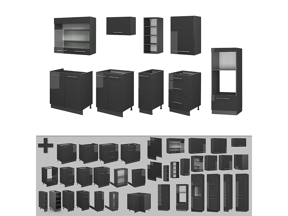 Mueble de cocina antracita alto brillo 280x60x81.6 fame-line