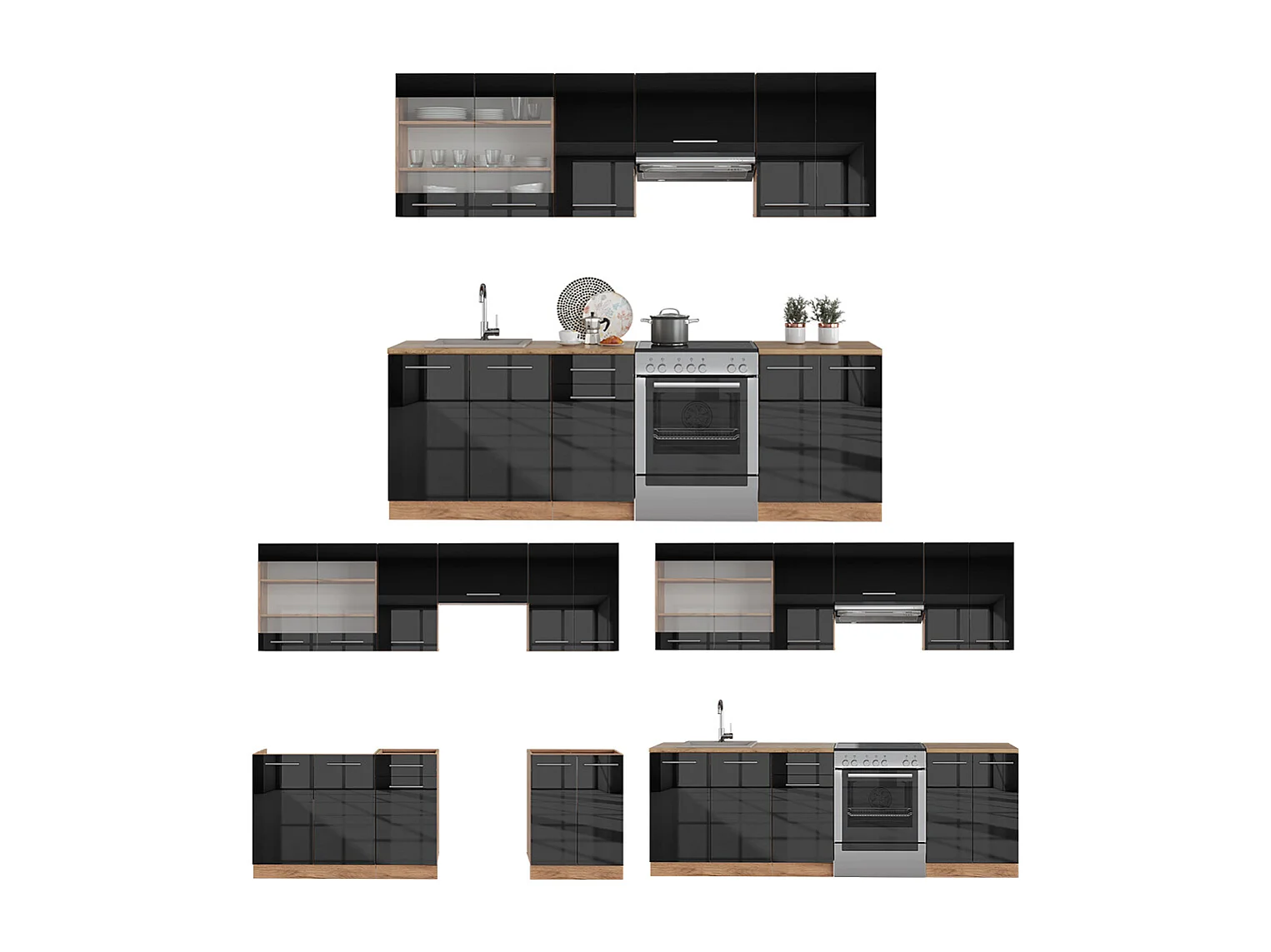 Mueble de cocina antracita brillo intenso/roble dorado eléctrico 240x46x81.6 fame-line