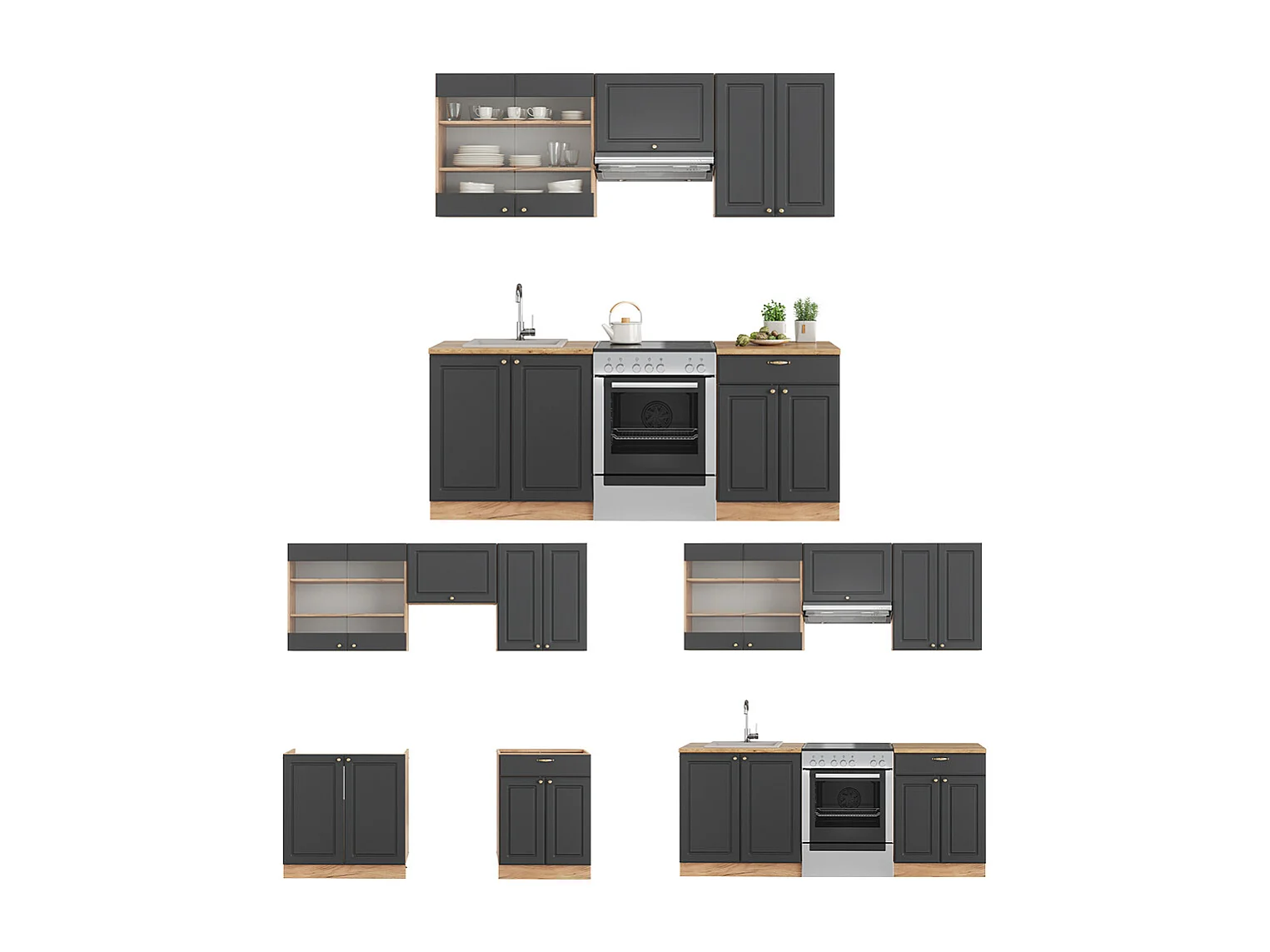 Mueble de cocina antracita casa de campo/roble kraft dorado 200x60x81.6 fame-line