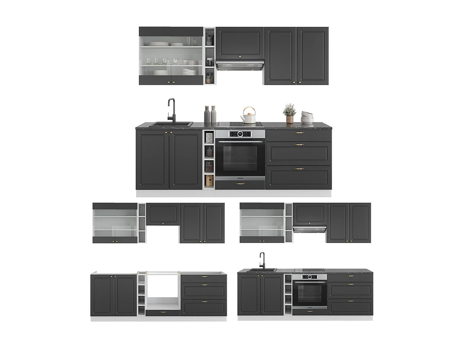 Mueble de cocina antracita-oro landhaus 235x60x81.6 fame-line