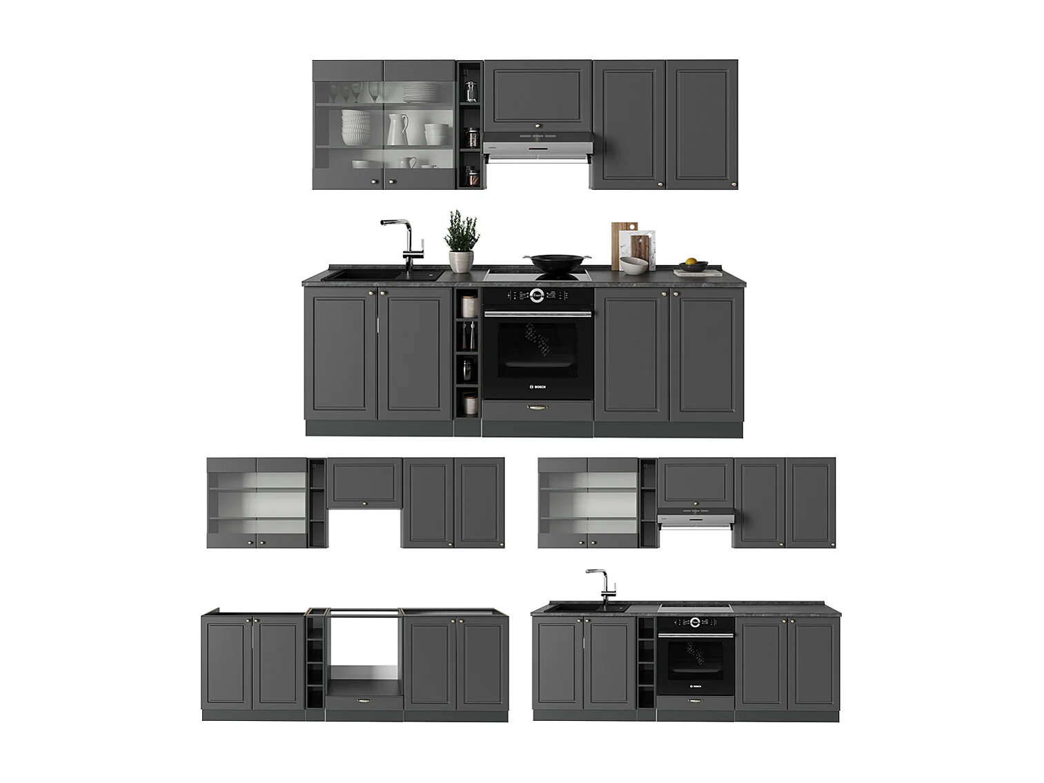 Mueble de cocina antracita-oro landhaus 235x60x81.6 fame-line