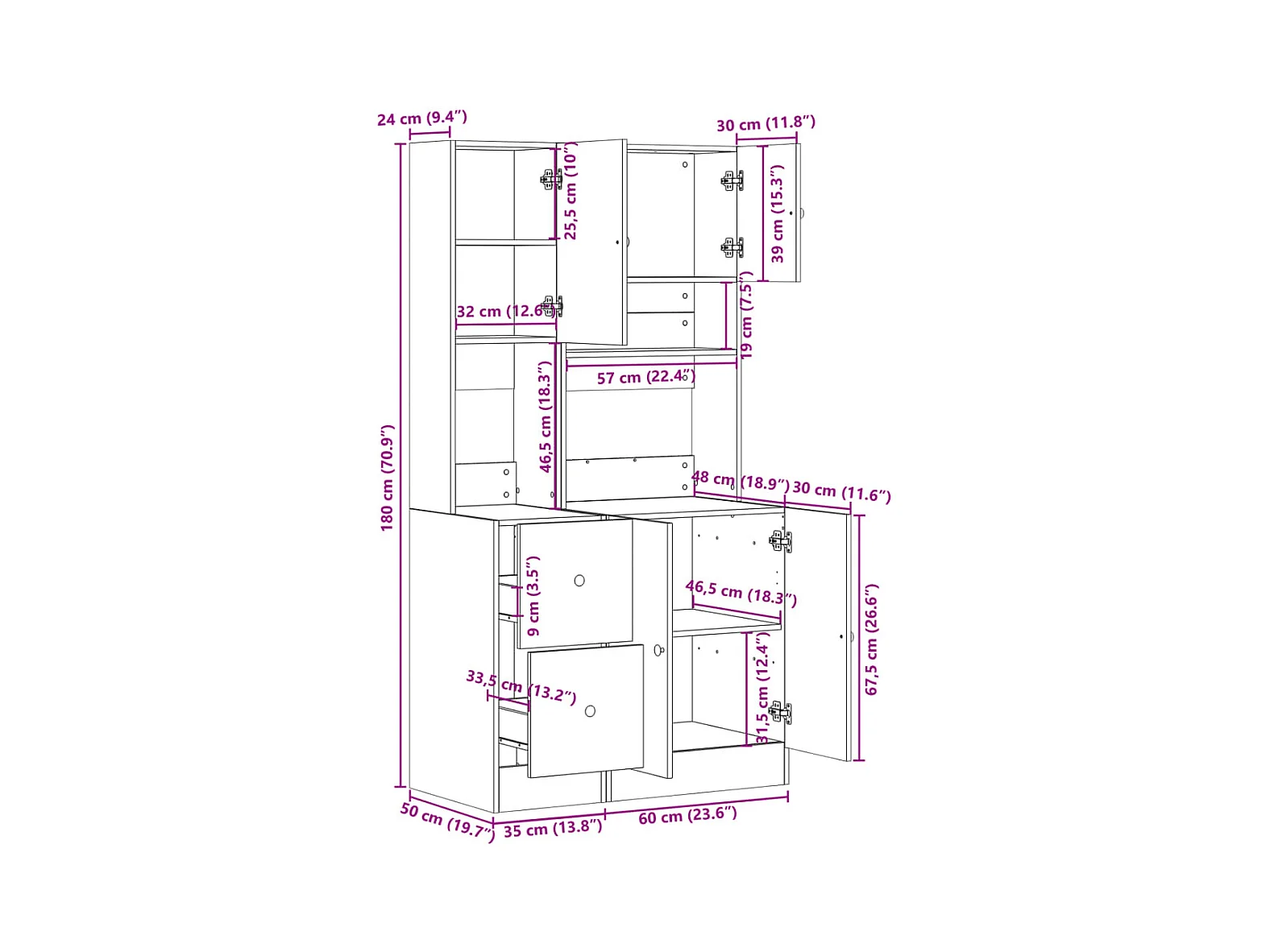Mueble de cocina blanco 60x50x180 cm madera de ingeniería