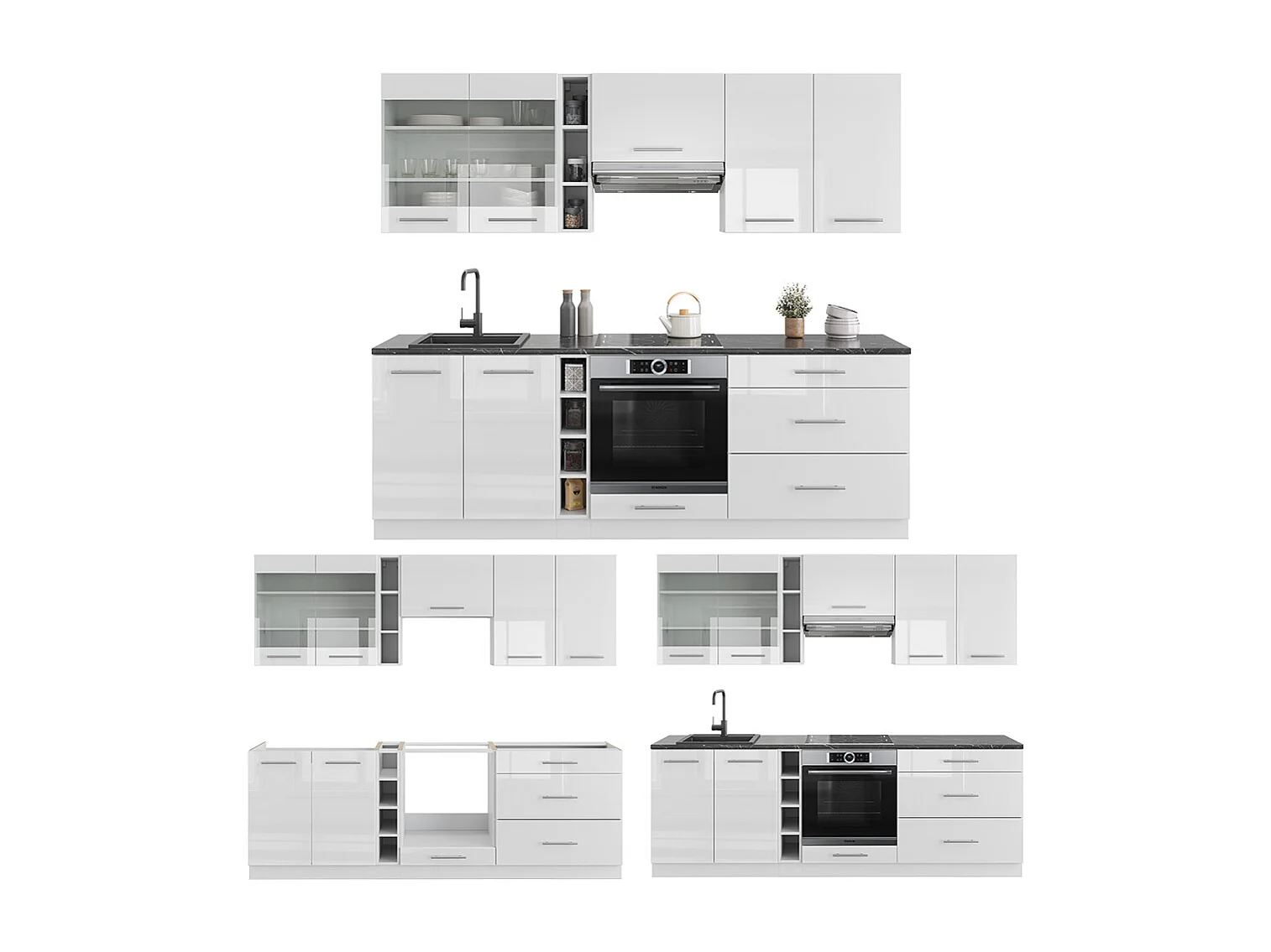 Mueble de cocina blanco alto brillo/blanco 235x60x81.6 fame-line