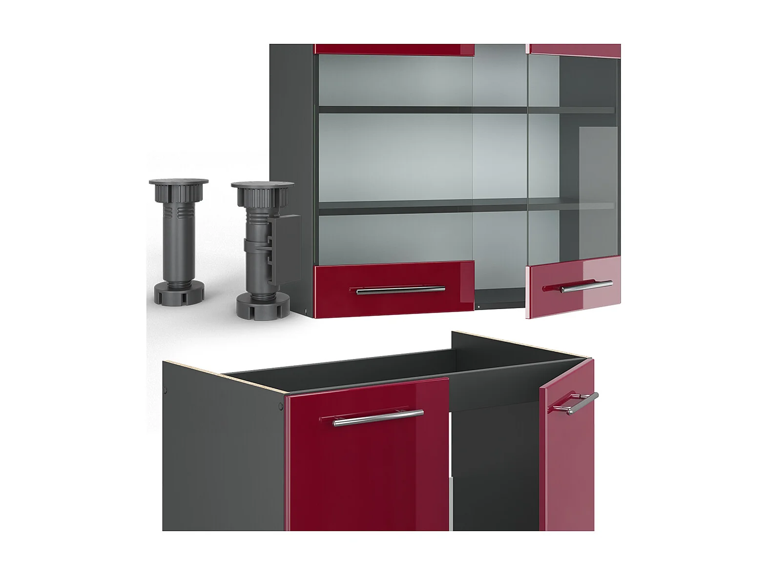 Mueble de cocina burdeos brillo intenso/antracita 200x60x81.6 fame-line