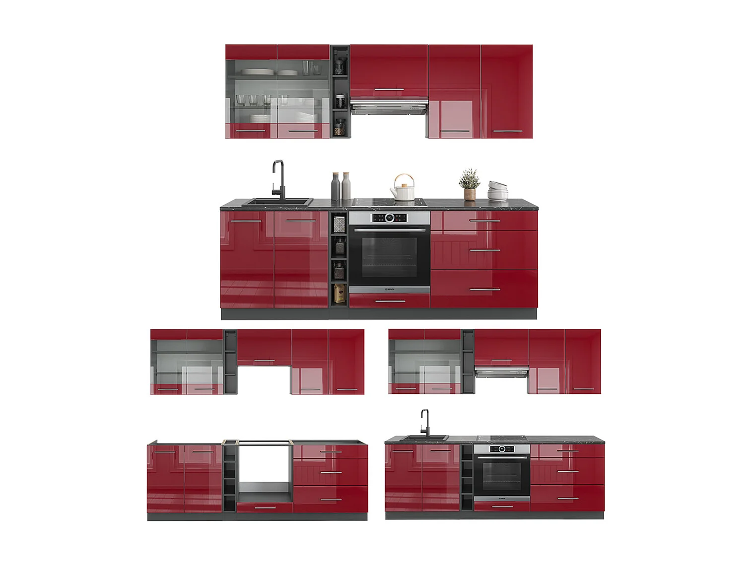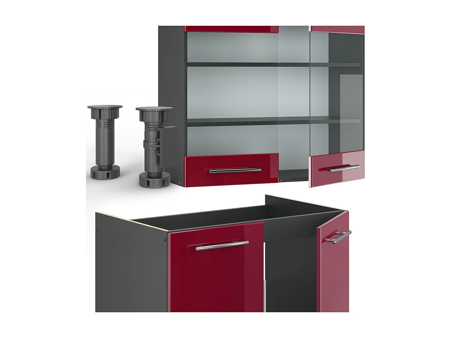 Mueble de cocina burdeos brillo intenso/antracita 235x46x81.6 fame-line