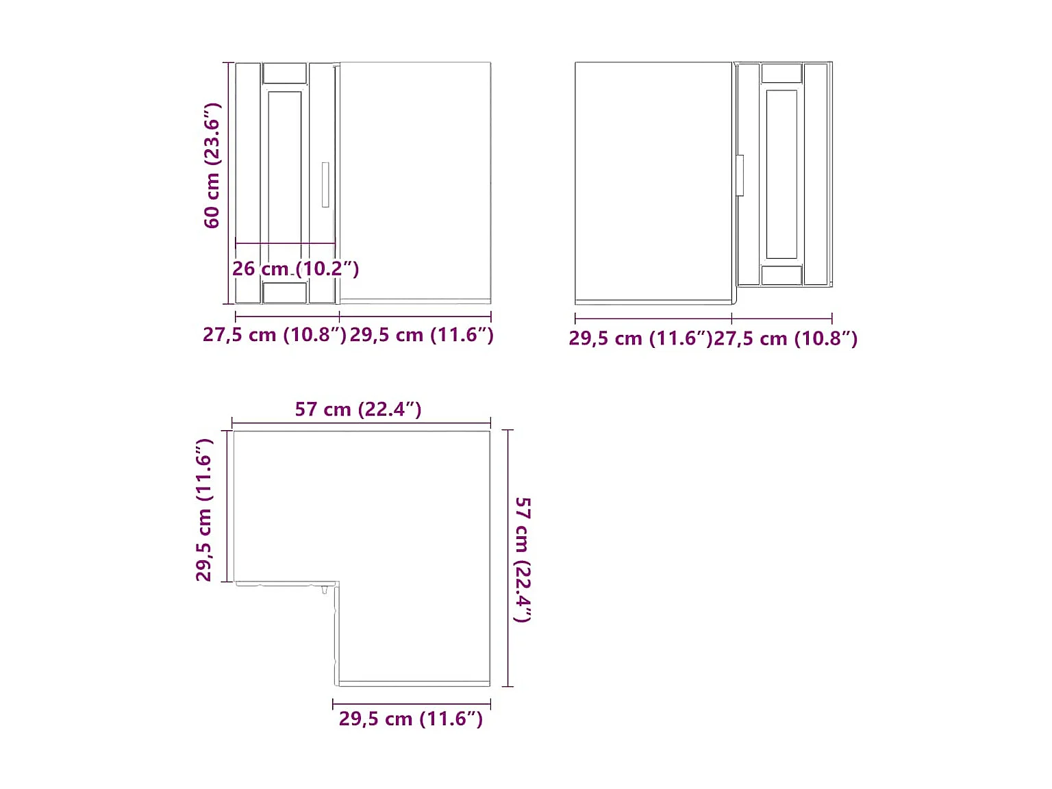 Armario esquinero colgante "Lyon" roble artesanal, 57 x 57 x 60 cm, madera de ingeniería