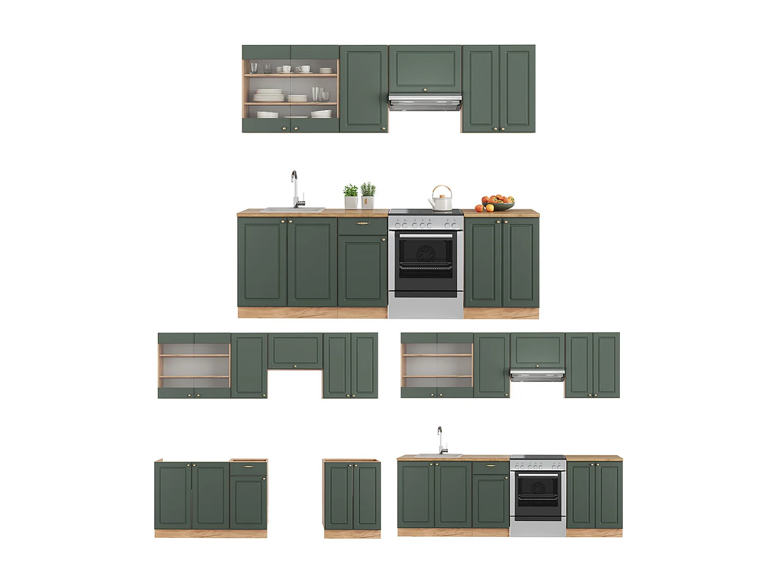 Mueble de cocina verde-dorado casa de campo/antracita 300x46x81.6 fame-line