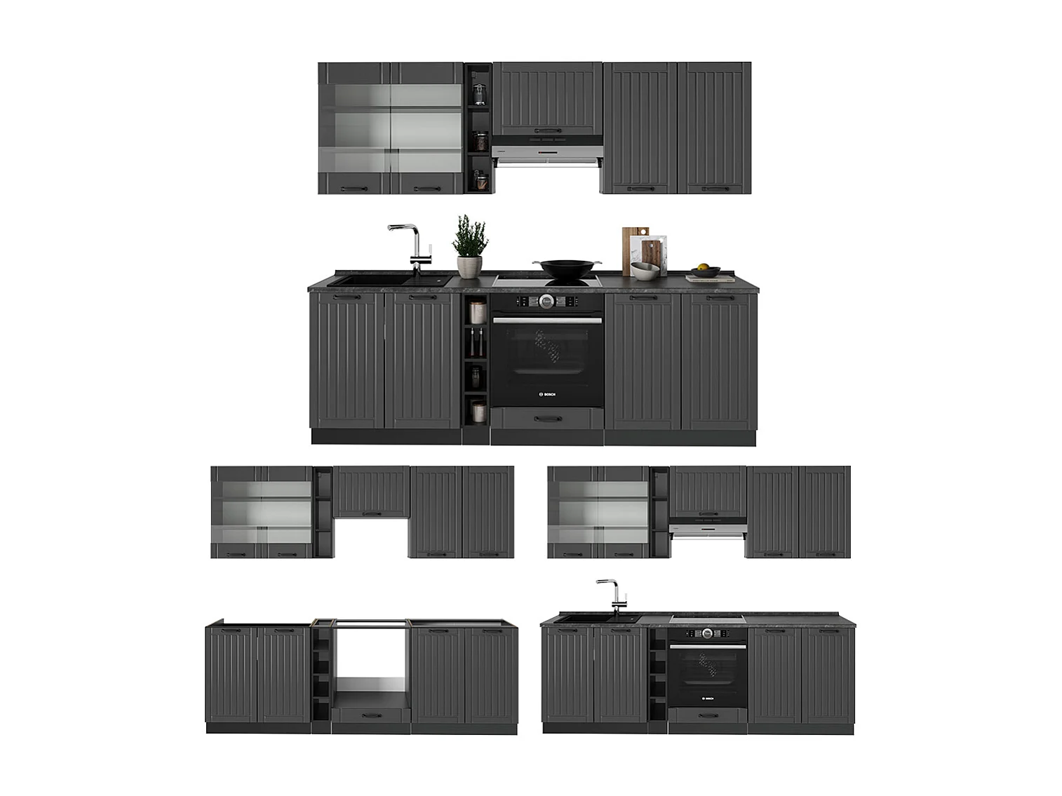 Mueble de cocina antracita casa de campo/blanco 235x46x81.6 fame-line
