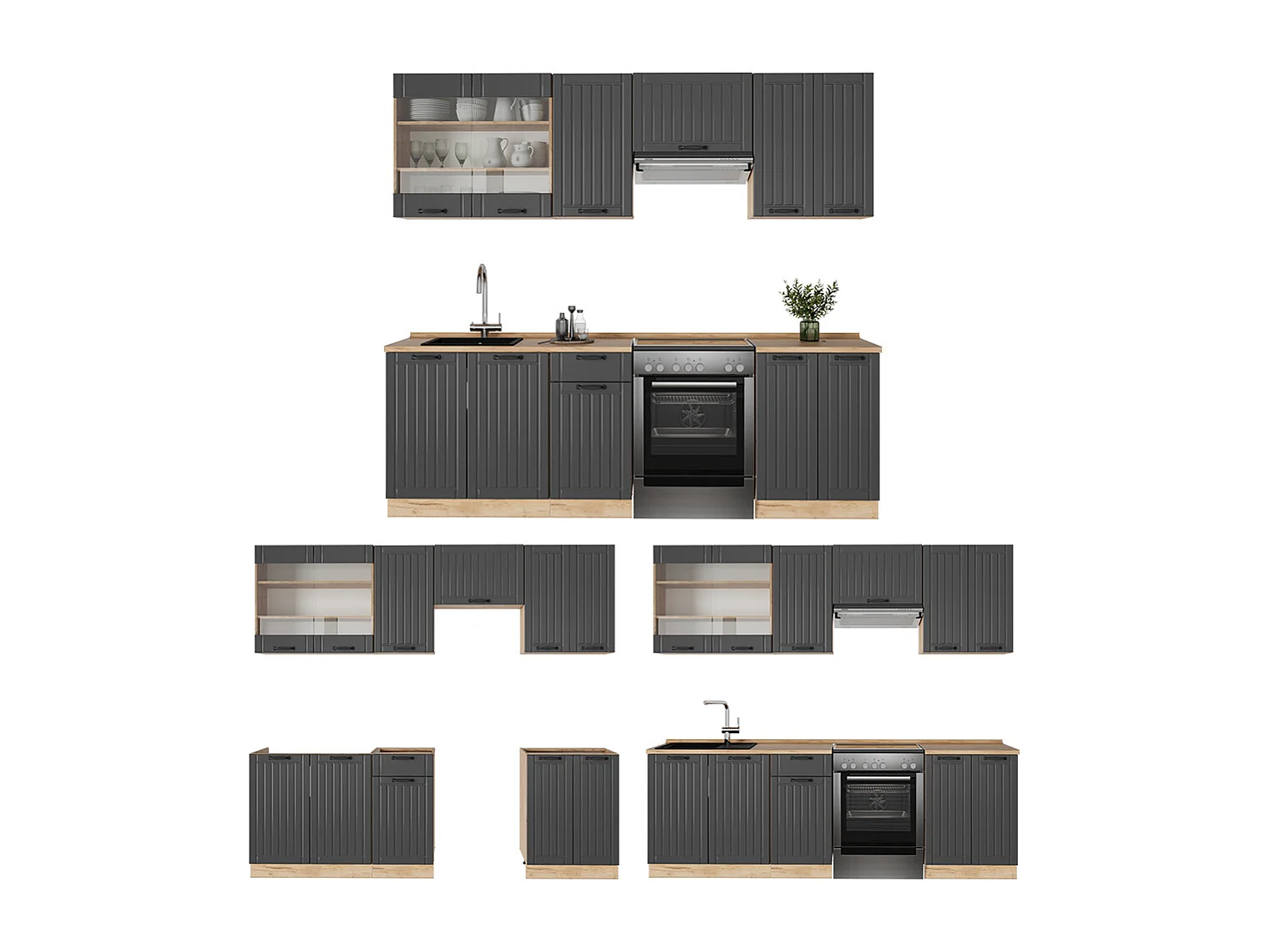 Mueble de cocina antracita casa de campo/antracita 240x46x81.6 r-line