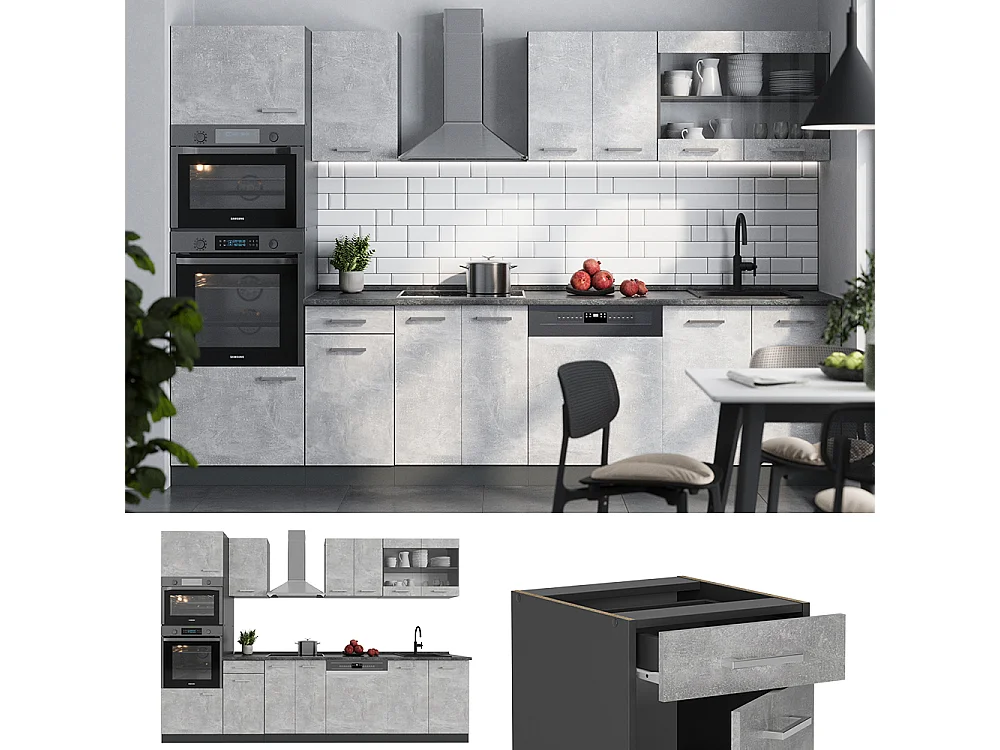 Mueble de cocina hormigón/antracita 300x60x81.6 r-line
