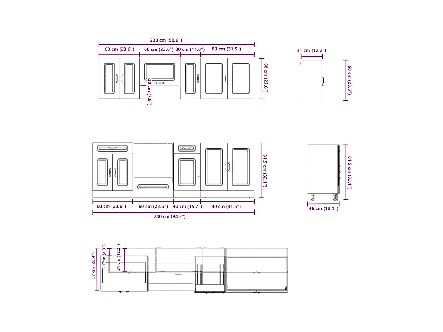 Conjunto de armarios de cocina "Porto" de 4 piezas de madera de ingeniería negra