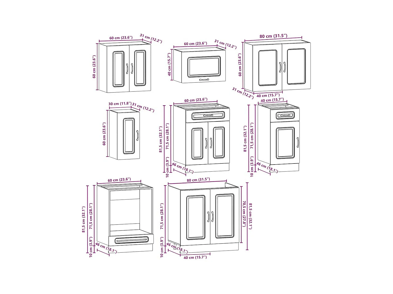 Conjunto de armarios de cocina "Porto" de 8 piezas de madera de ingeniería negra
