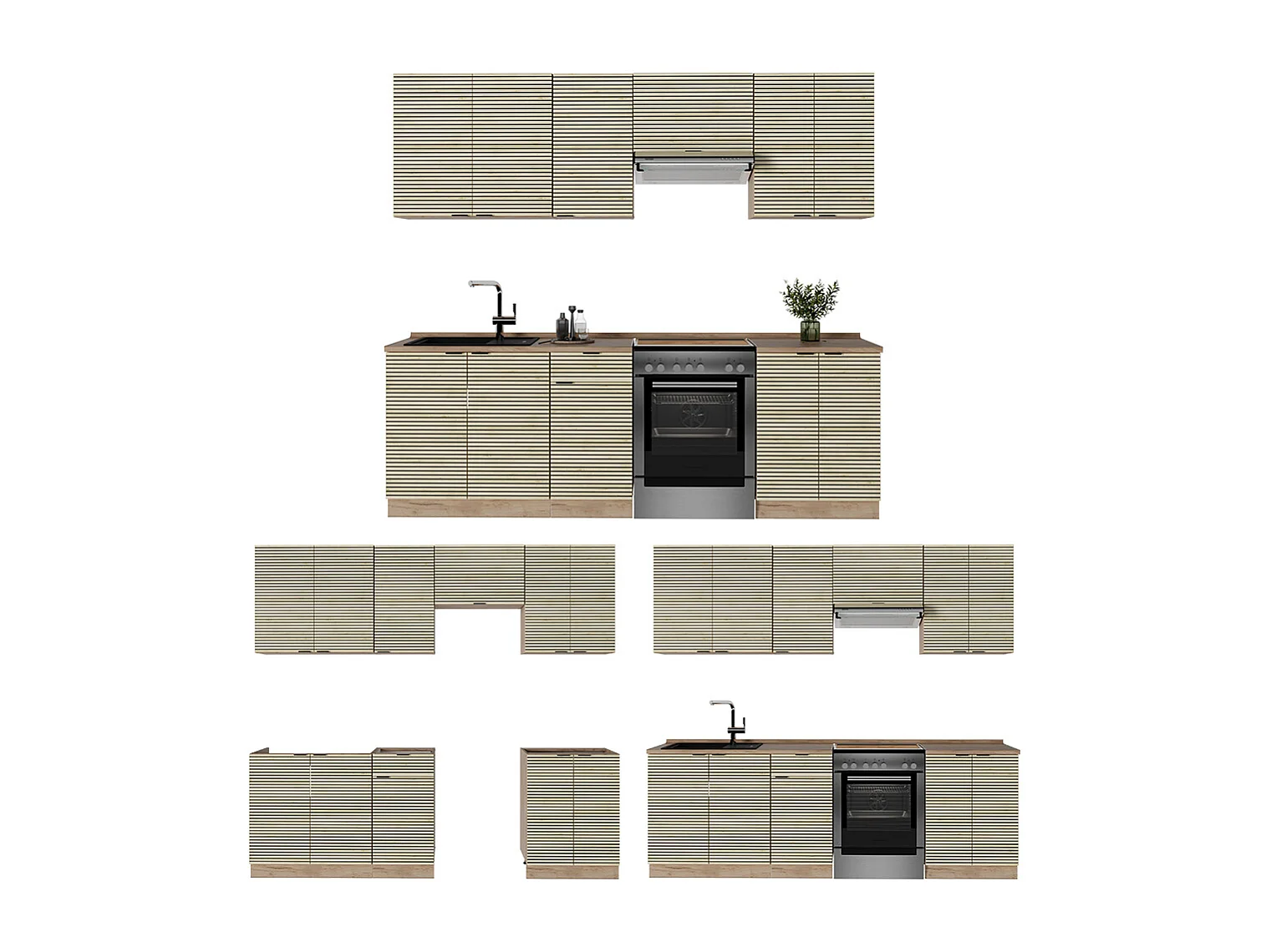 Mueble de cocina panel roble/blanco 240x60x81.6 fame-line